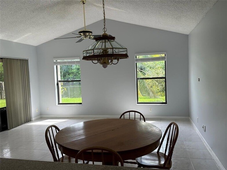 Spacious 3-bedroom, 2-bath single-family home located in the desirable Boca Winds community. Enjoy serene lake views from the screened patio. This well-maintained home features tile flooring , dining area, and a modern kitchen with a breakfast area kitchen table with 4 chairs and outside couch included.The home includes a 2-car garage, a double-wide driveway for extra parking, . Zoned for top-rated schools and just minutes from parks, shopping, and dining.Quiet, family-friendly neighborhood with sidewalks and community amenities. First, last & security required, no smoking ,The hot tub will remain on the premises,hot tub is in working condition but requires cleaning. Tenant acknowledges that use of the hot tub is not included in the lease. Lawn maintenance is included in the rent.