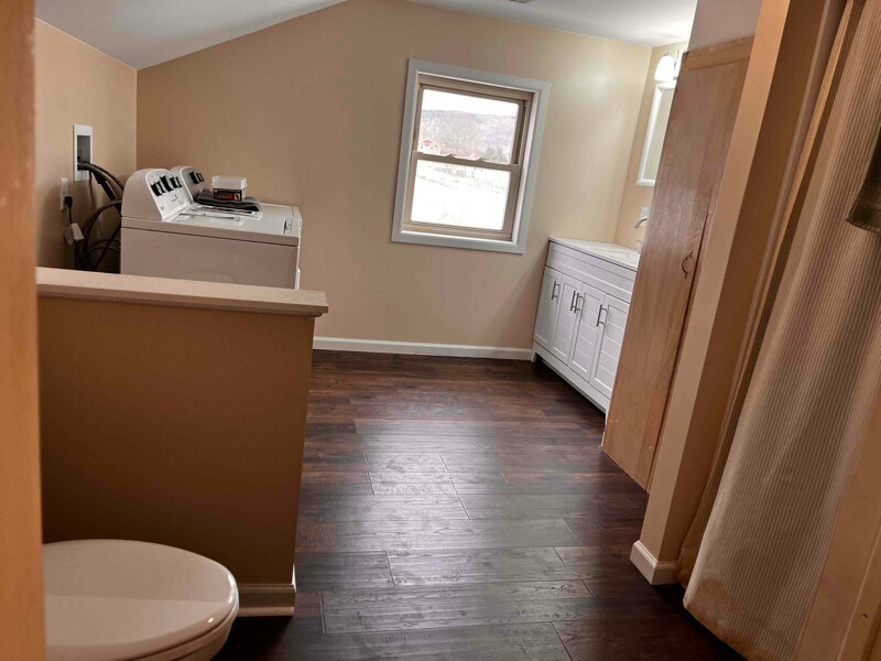 Property Id: 1851468 House is located on a farm with over 60 acres and a pond behind the house. Apartment #1 is on the second floor with carpeted steps. New modern kitchen. New washer and dryer located in large bathroom. Access from large covered porch. 2 other tenants share house. New central air and heat. Well water for clean cold drinking.