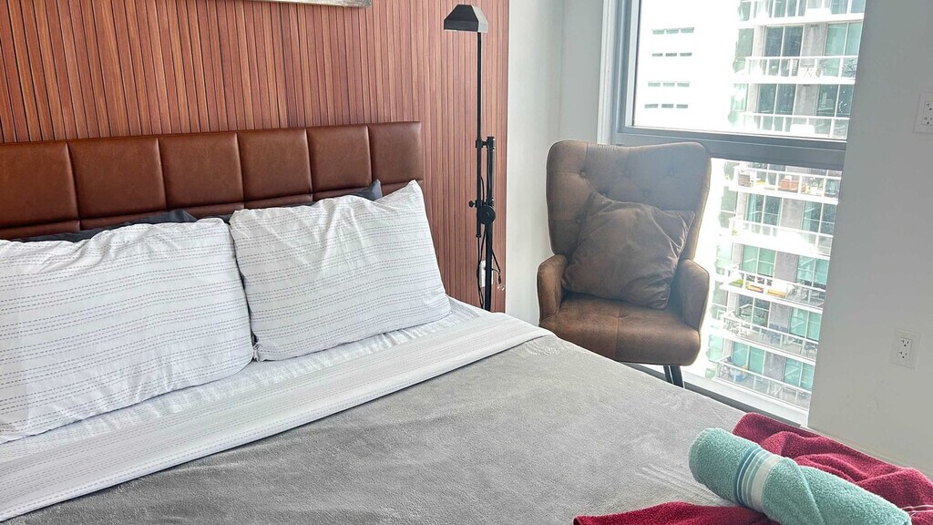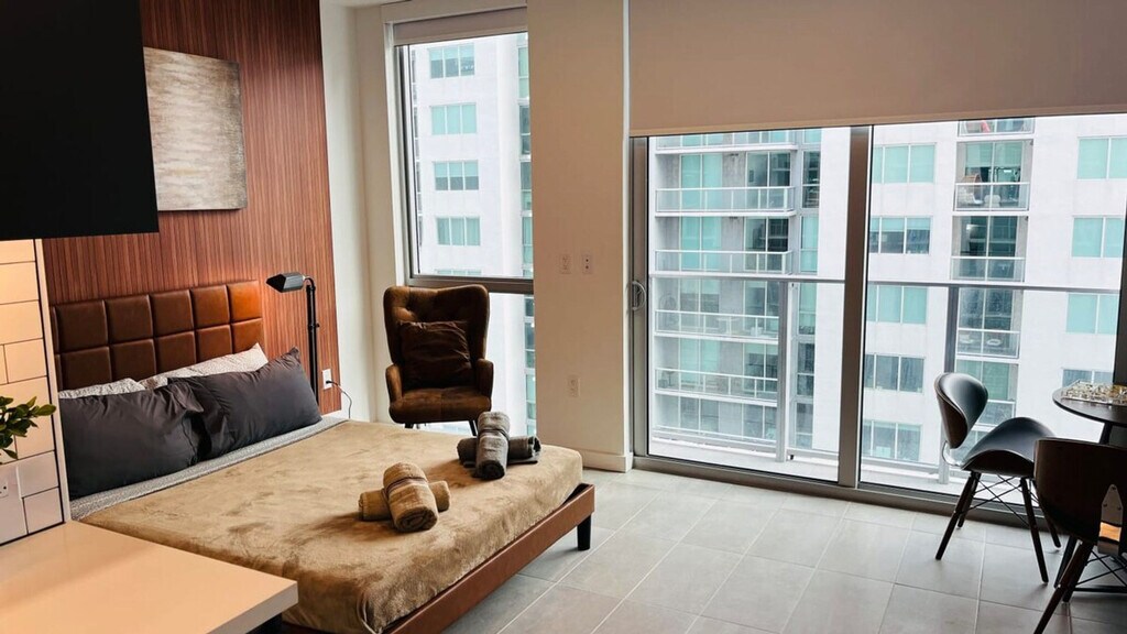 Welcome to your luxury retreat in the heart of Downtown Miami, offering stunning views and the perfect launchpad for exploring the city's best attractions. Enjoy world-class concerts and Miami Heat games at the Kaseya Center, the beautiful green space and bay views of Bayfront Park, and acclaimed dining options like Cvi.che 105 and Jaguar Sun. Experience a stunning rooftop pool and premium amenities for an unforgettable stay. Step into a stylish and smartly designed 1-bedroom apartment, created for ultimate comfort and convenience during your Miami stay. Relax in a modern living space featuring a queen-size pull-out bed and a TV for entertainment. Unwind in a serene bedroom with a plush king-size bed, ensuring a great night's sleep. A sleek, fully equipped kitchen has everything you need to prepare meals and snacks with ease. Refresh in a pristine, modern bathroom with premium fixtures and essential amenities provided. A washer and dryer are located inside the unit for your ultimate convenience. Your apartment is in the vibrant heart of Downtown Miami, putting the city's best culture, dining, and entertainment right at your doorstep. Enjoy top-tier dining at Cvi.che 105 for authentic Peruvian cuisine, Jaguar Sun for award-winning cocktails and exceptional pasta, and Motek Downtown for outstanding Israeli-Mediterranean food. Experience craft cocktails and nightlife at Over Under, Lost Boy Dry Goods, and The Corner. You are within walking distance of the Pérez Art Museum, the Phillip and Patricia Frost Museum of Science, and the Skyviews Miami Observation Wheel. Getting around is effortless from this central location, with Bayfront Park, Bayside Marketplace, the Kaseya Center, and countless restaurants just a short stroll away. You are just one block from the Metromover station, offering free and easy connections throughout Downtown and Brickell. The Metrorail and Brightline are also nearby. Whole Foods Market is a short walk away, perfect for grabbing groceries, snacks, or high-quality prepared meals. Guest registration is required, and the primary guest must be present with a valid ID for check-in. Enjoy keyless entry with our smart lock app and multiple digital codes for easy access. Loud noise and parties are strictly prohibited, and violations may result in significant fines from building management. Smoking is not allowed indoors, as it may result in a fine. Check-in is at 4:00 p.m., and check-out is at 11:00 a.m. Late check-out is available with 24 hours' notice for an additional cost. Package deliveries to the property address are not allowed. Lost linens or apartment keys will incur an additional cost to replace them. Please turn off the air conditioning when leaving to maintain a comfortable environment for everyone. [SI]