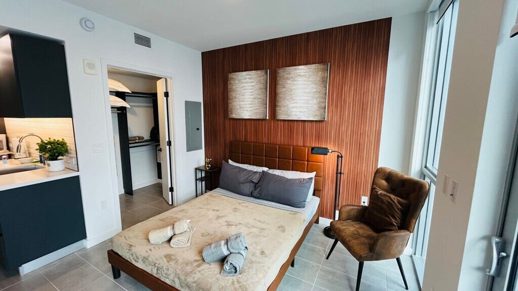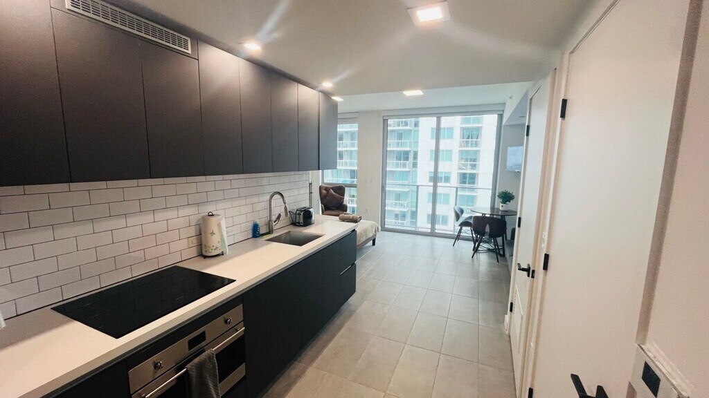 Welcome to your luxury retreat in the heart of Downtown Miami, offering breathtaking views and the perfect launchpad for exploring the city's best attractions. Enjoy world-class concerts and Miami Heat games at the Kaseya Center, the beautiful green space and bay views of Bayfront Park, and acclaimed dining like Cvi.che 105 and Jaguar Sun. This apartment features a stunning rooftop pool and premium amenities for an unforgettable stay. Step into a stylish 1-bedroom apartment, smartly designed for ultimate comfort and convenience during your Miami stay. Relax in a bright, modern living area with a comfortable queen-size pull-out bed, a Smart TV, and large windows with city views. Unwind in the serene bedroom, complete with a luxurious queen-size bed and soft linens for a peaceful night's sleep. A sleek, fully equipped kitchen includes a dining table and everything needed to prepare meals with ease. Refresh in a spacious and pristine bathroom, stocked with essential amenities. Enjoy the modern convenience of keyless entry, climate control, and an in-unit washer and dryer. Your apartment is in the vibrant heart of Downtown Miami, putting the city's best culture, dining, and entertainment right at your doorstep. Enjoy top-tier dining at Cvi.che 105 for authentic Peruvian cuisine, Jaguar Sun for award-winning cocktails and exceptional pasta, and Motek Downtown for outstanding Israeli-Mediterranean food. Explore craft cocktails and nightlife at Over Under, Lost Boy Dry Goods, and The Corner. Family fun and culture are within walking distance at the Pérez Art Museum, the Phillip and Patricia Frost Museum of Science, and the Skyviews Miami Observation Wheel. Getting around is effortless from this unbeatable central location, with Bayfront Park, Bayside Marketplace, the Kaseya Center, and countless restaurants just a short stroll away. You are just one block from the Metromover station, offering free and easy connections throughout Downtown and Brickell. The Metrorail and Brightline are also nearby. The area's best-stocked supermarket, Whole Foods Market, is a short walk away, perfect for grabbing groceries, snacks, or high-quality prepared meals. Loud noise and parties are strictly prohibited, and violations may result in significant fines from building management, which will be charged directly to the responsible guest. Smoking is not allowed indoors, as it may result in a fine. Quiet hours are between 22:00 and 8:00. Check-in is scheduled for 4:00 p.m., and check-out is at 11:00 a.m. If you need a late check-out, please contact us with 24 hours' notice; please note that this will generate an additional cost. Package deliveries to the property address are not allowed. In case of any lost linens or apartment keys, an additional cost will be charged to replace them. Don't forget to turn off the air conditioning when leaving to maintain a comfortable environment for everyone. [SI]