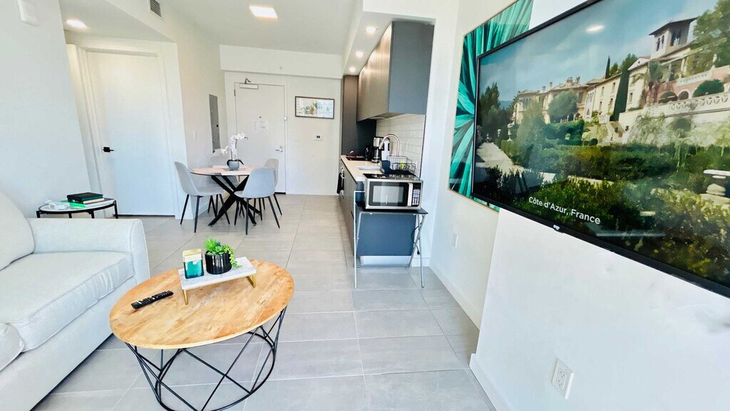 Feel at home in this perfectly located one-bedroom apartment in Miami Downtown, ideal for up to three guests. Enjoy the balance between downtown energy and quiet comfort, with Wynwood and South Beach just minutes away. The Metromover is conveniently across the street, providing easy access everywhere. The building features a heated pool, Jacuzzi, and gym, enhancing your stay with relaxation and fitness options. This apartment offers a bright living space with panoramic windows and a soft energy. The fully equipped kitchen includes a dishwasher, allowing you to stay light or cook full meals. The bedroom features a restful king-size bed and a walk-in closet for settling in fully. A sofa bed is ready for when your story includes a third guest. The rainfall shower offers more than function, turning it into a ritual, and in-unit laundry adds a practical touch for longer stays or light travelers. Parking is not included, but convenient options are nearby with public lots just a short, peaceful stroll away. Centrally located in Miami Downtown, this apartment offers proximity to beaches, shopping, nightlife, and everything the city has to offer. Explore the vibrant atmosphere and discover attractions such as the Arena, Bayfront Park, and the iconic Miami Beach/South Beach area. The apartment is conveniently located near several public transportation options, including the Government Center Metrorail and Metromover stations, providing easy access to various parts of Miami and beyond. With a Transit Score of 100/100 and a Walk Score of 99/100, it's a paradise for riders and walkers alike. Quiet hours are between 22:00 and 8:00. Initial check-in is done at the building's front desk, where the reception staff will verify your reservation. Download a specific app on your smartphone to manage access to the building and your apartment. The app allows you to open the building door, access elevators and amenities, and unlock your apartment door, simplifying arrivals and departures while enhancing security. The minimum age required to book this place is 21 years old for the primary guest as mandated by the building management. Electronic access is provided by the building's software and requires a smartphone. Essentials like trash bags, toilet paper, hand soap, shampoo, and body wash are provided, but there is no refill. No food or cooking condiments are supplied, so plan to pick these up at a nearby supermarket if you plan to cook at home. Includes keyless entry, app-controlled floor access, and a 24/7 concierge for a secure and seamless arrival experience.