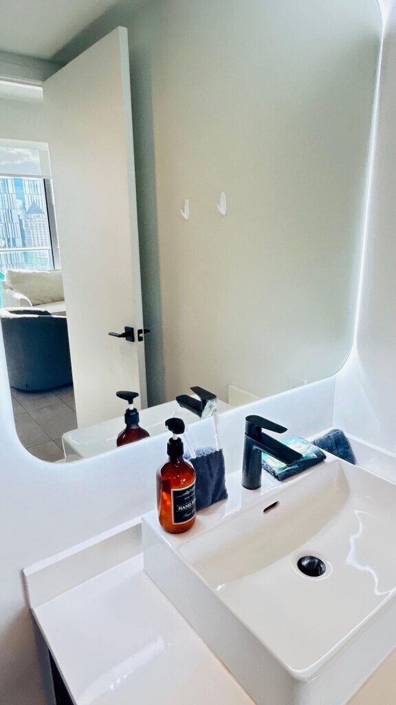 Welcome to your luxury retreat in Downtown Miami, offering breathtaking views from the heart of the city. This apartment serves as the perfect home base for exploring Miami's best, with an unbeatable location just steps away from world-class concerts and events at the Kaseya Center, the beautiful green space and bay views of Bayfront Park, and premier shopping and dining at Brickell City Centre. Step into a stylish and smartly designed space, created for ultimate comfort and convenience during your Miami stay. Relax in a modern living area featuring a full-size pull-out bed, perfect for lounging after a day of exploring. Unwind in a comfortable sleeping area with a plush king-size bed, ensuring a great night's sleep. A sleek, fully equipped kitchen has everything you need to prepare meals and snacks with ease. Refresh in a pristine, modern bathroom with premium fixtures and essential amenities provided. Access to a washer and dryer is available for your convenience. Guest registration requires the primary guest to be present for check-in, with a $53 fee for name changes upon arrival. Enjoy keyless entry with a smart lock app and multiple digital codes available. Community rules prohibit loud noise and parties, with significant fines for violations charged to the responsible guest. A starter kit of supplies is provided for your first day, but washcloths are not included. Quiet hours are between 22:00 and 8:00. All members staying must register with a photo ID on the same day as check-in. Smoking indoors may result in a fine. Late check-out requests require 24 hours' notice and incur an additional cost. Package deliveries to the property address are not allowed. Lost linens or apartment keys will incur an additional cost. Please turn off the air conditioning when leaving to maintain a comfortable environment for everyone. Your condo is located in the vibrant heart of Downtown Miami, putting the city's best culture, dining, and entertainment right at your doorstep. Enjoy top-tier dining with award-winning cocktails and exceptional pasta at Jaguar Sun, inventive Catalan tapas at NIU Kitchen, and fine dining at The Capital Grille. Experience craft cocktails and nightlife at Over Under and Lost Boy Dry Goods. You are within walking distance of Bayfront Park, the Pérez Art Museum Miami, and the Phillip and Patricia Frost Museum of Science. Getting around is effortless from this central location, with Bayfront Park, Bayside Marketplace, the Kaseya Center, and countless restaurants just a short stroll away. The College/Bayside Metromover station is one block away, offering free and easy connections throughout Downtown and Brickell. Whole Foods Market is a short walk away for groceries and convenience. Loud noise and parties are strictly prohibited and may result in significant fines from building management, which will be charged directly to the responsible guest. Quiet hours are between 22:00 and 8:00. Smoking indoors is not allowed and may result in a fine. Check-in is at 4:00 p.m., and check-out is at 11:00 a.m. Late check-out requests require 24 hours' notice and incur an additional cost. All members staying must register with a photo ID on the same day as check-in. Package deliveries to the property address are not allowed. Lost linens or apartment keys will incur an additional cost. Please turn off the air conditioning when leaving to maintain a comfortable environment for everyone. [SI]