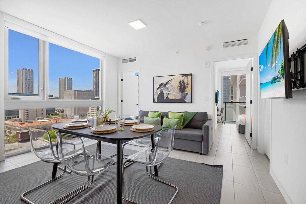 The advertised rate of $4,007/month is the lowest available price, based on a 1 month(s) stay with a move-in date of September 1, 2026. Rates vary depending on the duration of stay, season, and other parameters. For exact pricing and additional pricing components, please visit our website and enter your desired move-in and move-out dates. The rate is applicable when billed upfront; it can be higher if billed in multiple payments. Feel at home in this light 2-bedroom apartment in Downtown Miami. This centrally located apartment offers comfortable modern city living. This apartment offers an open kitchen living space concept and a washer and dryer. The kitchen is fully equipped. Enjoy access to building amenities including a gym, outdoor pool, hot tub, conference party room, and work stations. Paid valet parking is available in the building, along with paid public parking on the street and in nearby garages. Parking rates may vary based on the events in the area. The Paybyphone system can be used to park. There will be an extra charge for pets. Located alongside Biscayne Bay, Bayfront Park is an expansive green space in the heart of Downtown Miami. Bayside Marketplace sits just north of the park, boasting a slew of shops and restaurants in a walkable outdoor locale. This apartment is within walking distance of the Heat Basketball Arena, Bayside Market, Bayfront, and Brickell City Center Mall, and a short drive from Wynwood, Midtown, Miami Beach and South Beach. There is easy access to Metro Mover and Brightline train services. Smoking, vaping, and e-cigarettes are not permitted in the apartment. Two guests are allowed in the apartment, and additional guests are subject to a charge. Please keep all doors closed and the air conditioning on at all times to help prevent condensation and property damage. [SI]