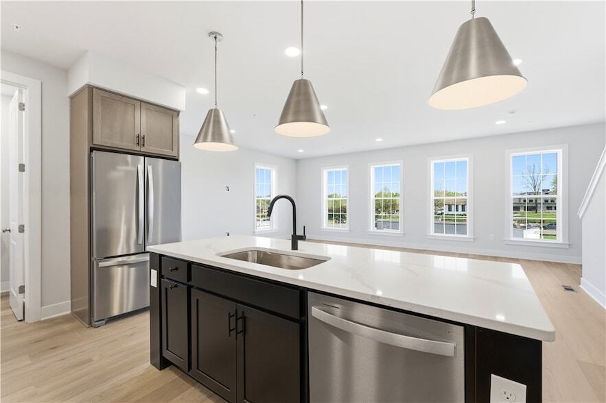 BRAND NEW HOME! This thoughtfully designed end-unit townhome blends style, space, and everyday comfort in a truly unique way. Featuring 2 bedrooms, 2.5 bathrooms, and an expansive 26-foot-wide open-concept layout, every inch of this home is crafted to feel bright, airy, and inviting. From the moment you arrive, you are greeted by a covered front porch, classic brick accents, and welcoming architecture that creates curb appeal along the Meeder streets. Inside, soaring 9-foot ceilings and warm luxury vinyl plank flooring set the tone for the open-concept main level, where natural light pours in, enhancing the open flow. The kitchen is a standout centerpiece, showcasing a stunning palette with warm-stained wood cabinetry, a black-painted island, white quartz countertops, stainless steel appliances, and a black faucet and hardware offering both rustic contemporary style and convenience. The space flows effortlessly into the sunlit great room, making it ideal for entertaining or simply relaxing at home. Sunlight abounds in the great room, thanks to the additional windows that overlook the side courtyard. Upstairs, you ll find a well-appointed secondary bedroom with its own full bath, along with a private primary suite designed for comfort. Enjoy a spacious walk-in closet and a spa-inspired bath that creates the perfect retreat at the end of the day. The laundry room is also conveniently located upstairs, adjacent to the bedrooms. The lower level features an entryway with space for a mudroom/drop zone, providing direct access to the oversized two-car garage. The space includes approximately 150 square feet of additional storage perfect for keeping everything organized without sacrificing space. This is Main Street. This is Meeder. The neighborhood connects residents with walking trails, green spaces, and gathering places that bring friends and families together, continuing the family s legacy by serving as a primary gathering place for the township. Meeder Green offers the opportunity to gather with friends or meet new ones. Dedicated to celebrations around the holiday tree, outdoor movies and more. Watch the kids laugh and play at TerraPark, where hills, a sand pit, and more spark their imaginations. Shop, eat, work out & relax... Wake up to coffee at Coffee Brake, work out at the Meeder Athletic club (24 hour free access), end your day with dinner or a drink at Recon Brewing and discover local shops with gifts and more throughout Meeder Crossroads. Meeder puts you at the center of Cranberry Township, convenient to shops, dining, and entertainment. But the best part? You ll find plenty to do without ever leaving the neighborhood. And with Seneca Valley s top-rated schools, it s a win all around.