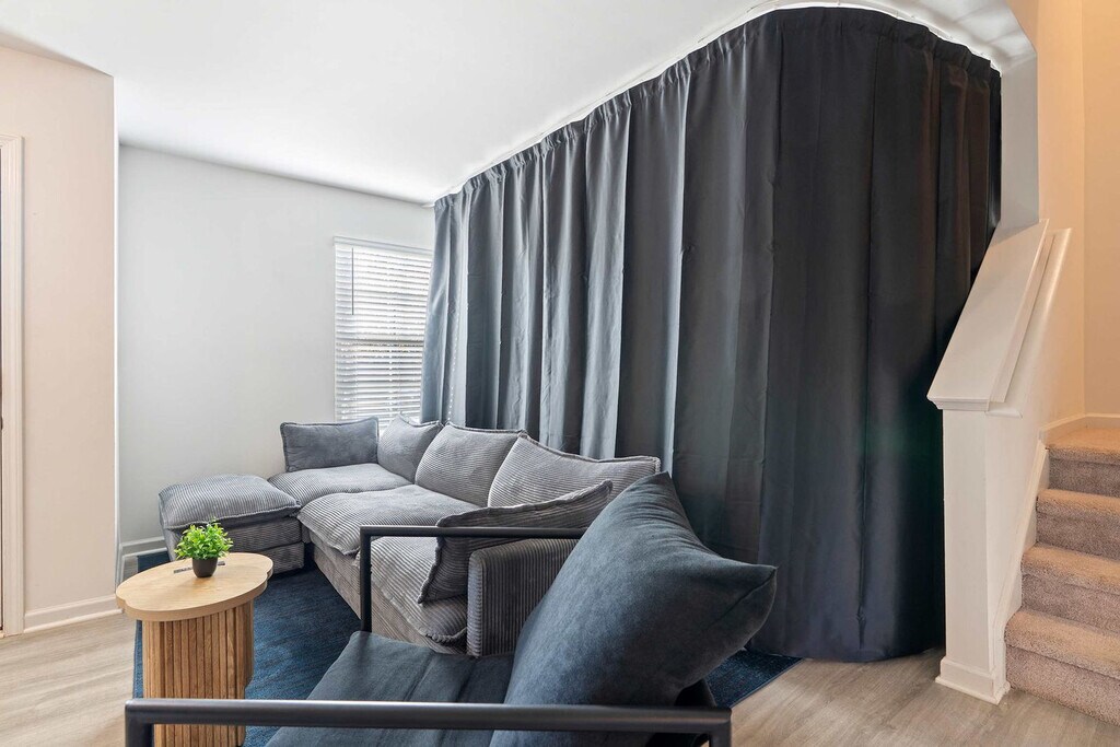 The advertised rate of $3,815/month is the lowest available price, based on a 30 day(s) stay with a move-in date of May 15, 2026. Rates vary depending on the duration of stay, season, and other parameters. For exact pricing and additional pricing components, please visit our website and enter your desired move-in and move-out dates. The rate is applicable when billed upfront; it can be higher if billed in multiple payments. Feel at home in this classy 1300 sq. ft. 4-bedroom townhome in Raleigh, ranked among the "Best Places to Live". This modern, open-concept home blends comfort and functionality with high-quality finishes. It features fast Wi-Fi (300+ Mbps), a fully equipped kitchen, an in-unit washer and dryer with starter detergent, and a private balcony or patio. The kitchen is fully equipped for everyday cooking and chef meals and includes a refrigerator, oven, stove, microwave, dishwasher, coffee and tea station, pots, pans, utensils, knife set, cutting board, plates, bowls, cups, blender, toaster, trash bags, dishwasher and laundry pods. Entertainment options include a 55” 4K smart TV in the living room with access to streaming platforms and an additional smart TV in one bedroom. The bedrooms feature memory foam mattresses and premium linens, and the spa-style bathrooms have high-pressure showers and include towels, shampoo, conditioner, body wash, hand soap, and a hair dryer. Parking is limited to three vehicles in the spots labeled 227 in front of the townhouse. Mid-size SUVs or smaller can fit in the garage. Optional cleaning reset for extended stays is available for $175, which includes new linens, surface cleaning, and trash removal. Up to two pets are welcome with a fee of $15 per night for one pet or $25 per night for two pets, each capped at $195 and $295 per stay, respectively. A one-time surcharge applies for pets over 35 lbs: $49 for one large pet or $95 for two large pets, in addition to the standard pet fee. Early check-in and late checkout are available based on availability for $59 for 1 hour or $89 for 2 hours. Conveniently located near popular dining, nightlife, and major attractions, this townhome is approximately 10 minutes from Downtown Raleigh and the North Carolina Museum of Natural Sciences, and approximately 15 minutes from PNC Arena and North Hills. A full local guide with dining, coffee, shopping, and nightlife recommendations is provided in the Guest Portal after booking. Quiet hours are from 10:00 PM to 8:00 AM. Noise over 90 dB sustained for 5+ minutes will trigger a violation. Smoking is not permitted anywhere on the property, including indoors, patios, balconies, or garages, and smoking or tampering with detectors will result in fines up to $2,500 and immediate removal. No parties or events are allowed, and only registered guests are permitted; unauthorized guests may result in fines and cancellation without refund. The primary guest must be 21+, and guests aged 18–20 may reserve with a one-time additional fee of $35. Failure to disclose pets or pay the required fees in advance may result in additional charges of $500+ and/or cancellation of your reservation. Includes a dedicated workspace. [SI]