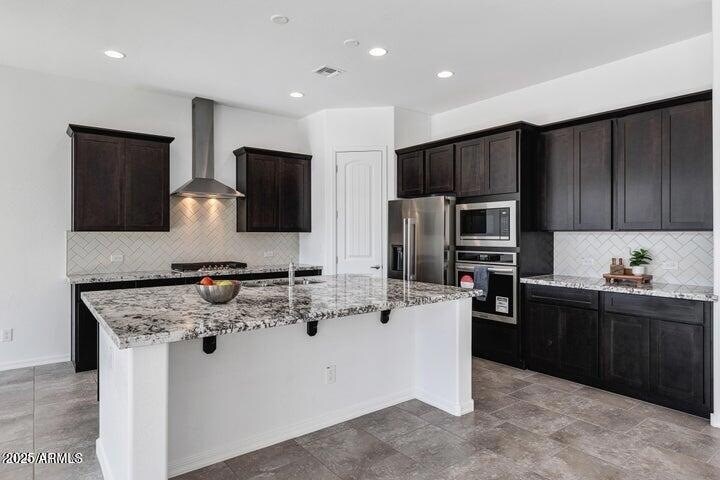 Welcome to this beautiful, almost new house for rent in the heart of Queen Creek, AZ. This luxurious home boasts three spacious bedrooms and three full bathrooms, and a bonus room that can be used as an office or play room. The house features an upgraded kitchen with a large granite breakfast island, beautiful backsplash, and espresso cabinets, creating a perfect blend of style and functionality. The combination of tile flooring in the main living areas and carpet in the bedrooms adds a touch of warmth and comfort. The large backyard with synthetic grass and back patio provide an ideal setting for outdoor relaxation or entertaining. As a resident, you'll also have access to the community pool, adding to the list of amenities that make this home a great choice.