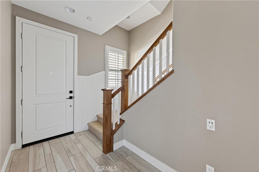 Situated in the prestigious city of Irvine, this beautifully upgraded former model home offers 4 bedrooms and 3.5 bathrooms. Thoughtfully designed with attention to detail, the home features recessed lighting, custom flooring, upgraded baseboards, crown molding, surround sound, and more.The main floor includes a bedroom and bathroom that can easily serve as a home office or guest suite. Upstairs, three bedrooms sit on the same level, including a spacious primary suite with a large walk-in closet, ceiling fan, and a stunning ensuite bath complete with dual sinks, ample cabinetry, and an oversized walk-in shower.The open-concept living area extends to a generous balcony, perfect for relaxing or entertaining. Additional highlights include a laundry room with built-in storage, window shutters throughout, and a two-car garage with direct access.Located in the desirable Cariz community by Tri Pointe Homes, residents enjoy access to 14 neighborhood parks, private pools, tennis and basketball courts, scenic hiking and biking trails, and the award-winning Irvine Unified School District. Conveniently close to Woodbury Town Center, this upgraded Phase 5 model is move-in ready and truly a must-see.