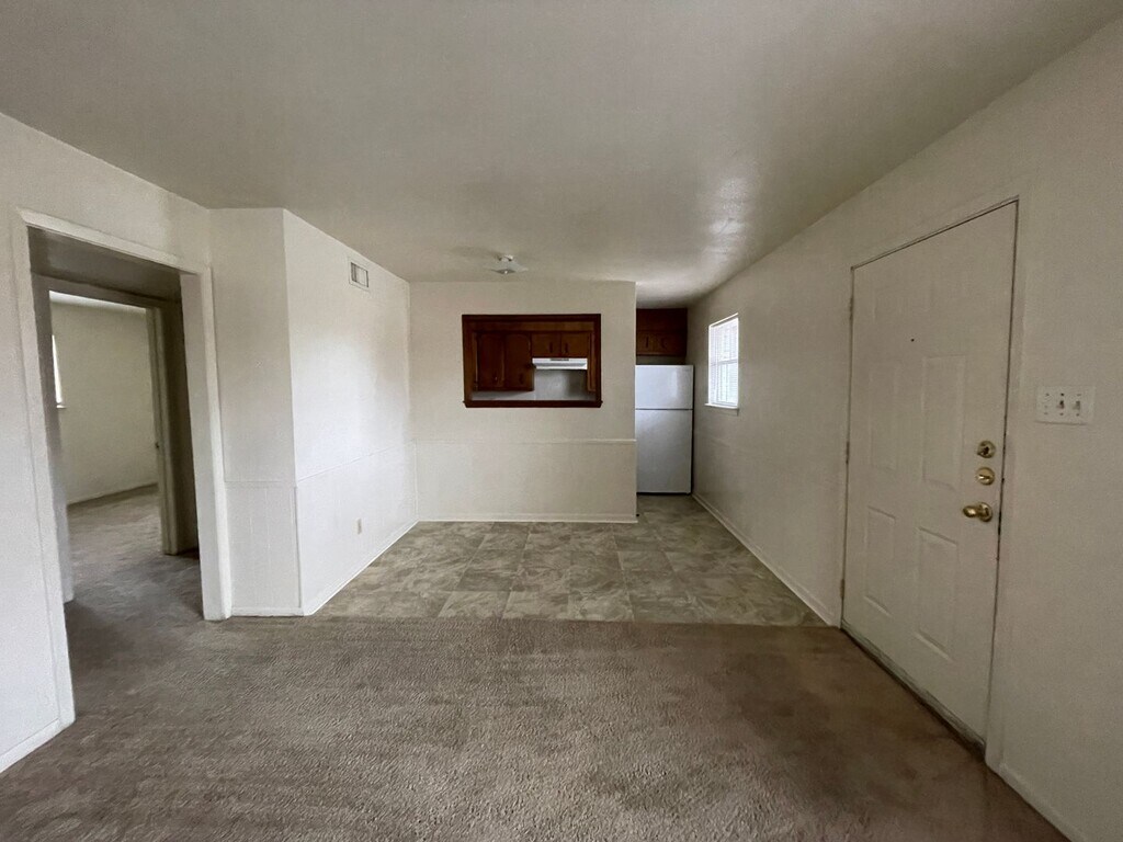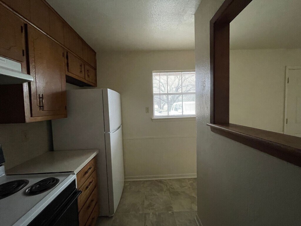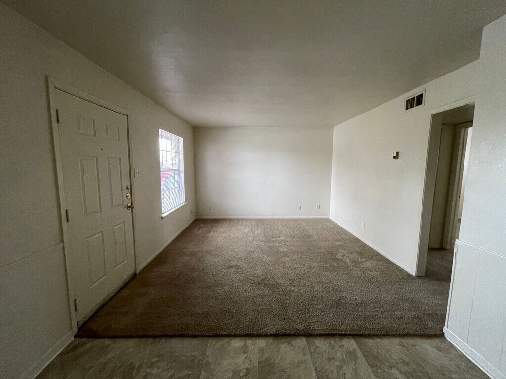 View 360° virtual tour: This 2-bedroom, 1-bath first-floor apartment for rent in Killeen, TX offers a comfortable and functional layout. The living room, hallway, and bedrooms feature carpeted flooring, while vinyl flooring is found in the kitchen, dining area, and bathroom. The kitchen includes traditional white appliances and a convenient wall cutout that opens sightlines into the dining and living areas, creating a more connected feel. This pet-friendly rental includes allocated water for added convenience. Appointments aren’t required to tour. Contact us or stop by our Killeen office to learn more and see this apartment in person once it becomes available! We are located at 1020 W Jasper Dr, Killeen, TX 75642.