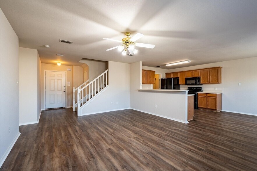 Lovely 4 Bed, 2.5 Bath. Spacious floor plan features 2 large living areas, nice kitchen with all new appliances. Master suite downstairs, with garden tub, separate shower, double sink vanity, large walk in closet, lots of privacy. 3 nice size bedrooms upstairs with large play room for the kids. Nice size fenced back yard. Luxury Vinyl plank in living area and carpet throughout. A must see. Current photos from previous listing.Tenants must sign lease and pay funds owed within 24 hours of approval! Must move in within 14 days from the available date!Leaser & agent to verify all info herein include schools & dimensions.