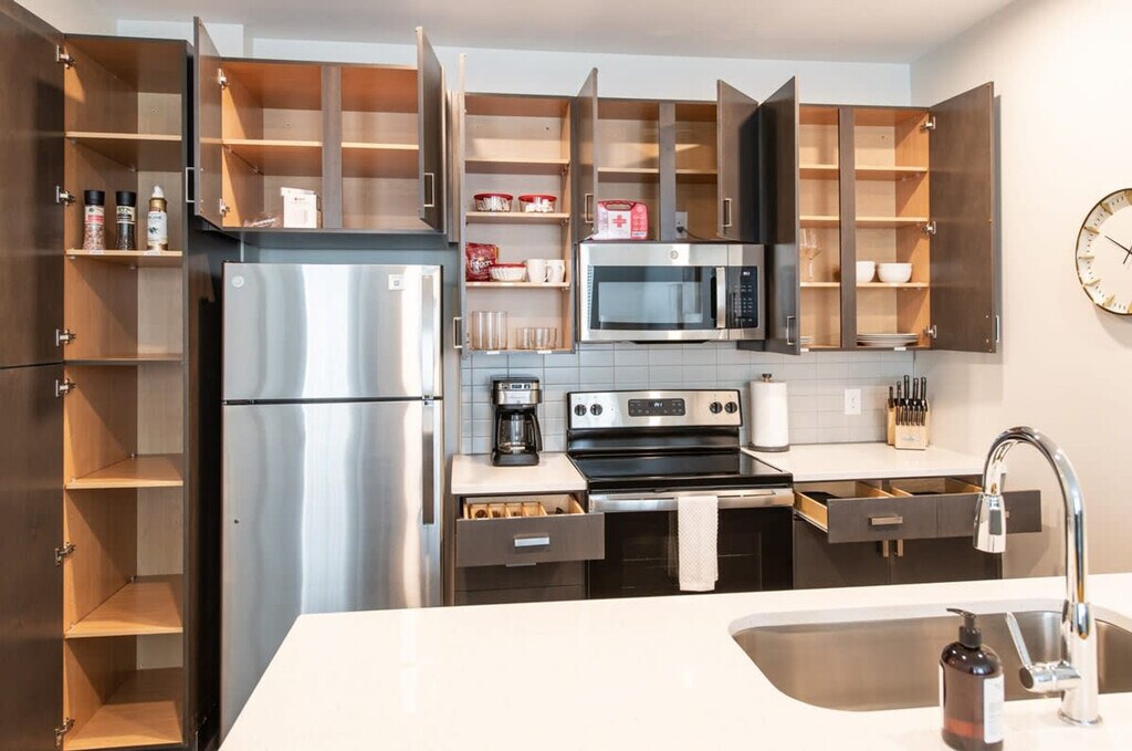 Feel at home in this spacious 2-bedroom apartment at Artistry Cincinnati. With direct access to the Monon Trail on the waterfront and a 5-minute walk to both stadiums, the location cannot be beaten. This apartment features inviting living areas, a fully equipped kitchen, and a bathroom complete with toiletries. Building amenities include a large outdoor pool (seasonal, open summer through Labor Day, closed in winter, pool temporarily unavailable), a sundeck, a fitness center, a grilling area and fireplace, and bike storage. You will also have direct access to the Monon Trail. Enjoy the convenience of a washer and dryer in the unit, a Smart-TV with streaming apps installed, a TV in the living room, and complimentary coffee. While designs are based on photos, each unit has individualized elements of design and custom decorative features. This apartment is wheelchair accessible. Max 2 pets (40lbs combined) are allowed, but no Pit Bulls or Bull Mastiffs [similar breed]. An additional pet fee of $100-300, based on stay length, will be collected separately. Known for its plethora of restaurants, bars, and professional sports stadiums, there’s plenty for you to explore during your getaway to Cincinnati. You’ll find everything from casual local coffee shops to high-end local eateries, and shops and attractions around every corner. A car isn’t necessary to explore the area. Find restaurants, entertainment, and activities within walking distance. There are also Lime and Bird electric scooters in the area available for rent. No smoking or parties are allowed. There is a $500 penalty for removing smoke detectors. No weapons or drugs are allowed; zero tolerance means police will be called for violating this rule. Guests must agree to not disturb neighbors at all times during the stay and must observe quiet hours from 9pm-7am each day. The apartment is proactively monitored with decibel sensors for compliance with this noise policy. Check-in is at 4 PM and check-out is at 11 AM (a $75/hr late fee applies). No outside guests are allowed without permission. Two towels are provided per guest per stay. A valid photo ID is required to complete the booking. Guests must be at least 22 years old for out-of-town guests and 25 years old for local guests. Long-term guests (30 days+) will be subject to a background search and credit check. An emotional support animal may incur a pet fee. To abide by all legal requirements and HOA rules, you will be asked to provide a copy of your official government-issued photo ID, confirm your contact information, and pass through our verification portal and, in some instances, complete a criminal background check. Failure to provide these documents will result in a cancellation and denied entry. [SI]