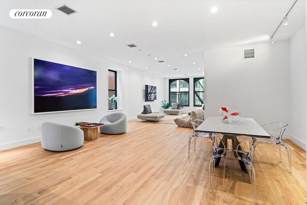 Welcome to 228 West Broadway, Apartment 3, where historic charm meets modern luxury in this expansive 2,200 square foot full-floor loft. With a private elevator entrance that opens directly into your home, this unique residence offers an unparalleled living experience in the heart of Tribeca West Historic District. As you step off the private elevator, you're greeted by an elegant foyer, complete with a large coat closet, seamlessly transitioning into the expansive living space. With 11-foot ceilings and 8-foot tall windows, the apartment is bathed in natural light from its Eastern exposure on West Broadway and Northwest exposure on North Moore Street. The recessed lighting throughout provides perfect artificial light, enhancing the beautiful plank hardwood flooring that runs throughout the loft. The living room is a tranquil haven overlooking North Moore Street, offering great afternoon light and a serene environment for relaxation. This expansive space easily accommodates a full living room setup, making it perfect for both everyday living and entertaining. Adjacent to the living area is the massive dining room, positioned off the kitchen. This space is ideal for hosting dinner parties, with plenty of room for an 8-10 person dining table and additional furnishings. The fully renovated kitchen is a culinary dream, featuring white shaker cabinets, stainless steel appliances from LG, a wine refrigerator from Electrolux, and a massive center island for meal prep and casual dining. Black granite countertops and a breakfast bar with room for three bar stools add a touch of elegance, while a window and recessed and pendant lighting ensure the kitchen is bright and inviting. A pantry closet adjacent to the kitchen offers ample storage space. The primary bedroom is an immense serene sanctuary with Eastern exposure, flooding the room with beautiful morning light. Overlooking the trees on West Broadway through three huge windows, this quiet retreat offers enough space for an additional office area and TV setup. The en-suite bathroom is a luxurious escape, featuring grey and white quartz countertops, shaker cabinets, stainless faucets, a double vanity sink, porcelain tile flooring, a deep soaking tub with polished stainless fixtures, a stall shower with a modern glass door, and a towel warming bar. The massive walk-in closet with custom shelving provides ample storage space. The second bedroom is also impressive, offering spacious comfort with views overlooking North Moore Street. It features its own massive walk-in closet with custom shelving, ensuring plenty of storage. The second bathroom, accessible for guests, mirrors the luxury of the primary bath with grey quartz countertops, a shaker cabinet with a polished stainless faucet, white porcelain tile flooring, a large tub shower with polished stainless fixtures and a modern glass shower door, and an open closet with ample shelving for towels. Additional features of this exquisite loft include a washer/dryer in its own laundry room, shaker style interior doors with stainless steel hardware, zoned central A/C & heat, and beautiful plank hardwood flooring throughout.The building, with its rich history dating back to 1892, offers modern amenities such as Spectrum internet, a video intercom system, and pet allowances on a case-by-case basis. With only five residential units, privacy and exclusivity are guaranteed. Utilities are managed directly by the resident, allowing you to customize your usage to fit your lifestyle.Situated in prime Tribeca, 228 West Broadway is surrounded by vibrant dining, nightlife, and shopping. With easy access to the 1, 2, 3,A, C, E, and R, W, Q subway lines.The landlord charges one fee in connection with this rental, which is a $20 credit check fee. This fee is paid directly to the credit reporting service only after your application has been reviewed and has other