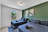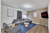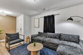 Stay in style in the eclectic city of Raleigh, ranked among the "Best Places to Live" by Money Magazine. This classy 1300 sq. ft. townhome features three bedrooms and two and a half bathrooms, offering a king-size bed, four plush full beds, and a convertible sleeper couch for your comfort. With lightning-fast Wi-Fi, a fully equipped kitchen, and luxury amenities, this home is specially designed for longer stays. Step out to a lively neighborhood, just minutes from the best restaurants, cafés, bars, and shops. Begin your day with a perfectly brewed cup of tea or coffee from the convenient coffee station in your upscale kitchen. Whether you're here for business or leisure, this space provides the perfect balance of comfort and convenience. With vibrant restaurants just minutes away, you might find yourself exploring the culinary scene in Raleigh each night. After a long day, your well-equipped kitchen and elegant dining table are ready to provide a 5-star dining experience right at home. This inviting open-concept living area is elegantly furnished to offer a blend of relaxation and functionality, with large windows flooding the space with natural light and modern décor creating a sophisticated yet comfortable atmosphere. Private garage parking and driveway are available for your convenience. We welcome up to two pets per reservation, each weighing under 35 lbs, with a fee of $49 per pet for stays of 1–6 nights. Additional charges apply for longer stays. For pets over 35 lbs, a one-time large pet fee applies. Bringing undisclosed pets may result in a minimum $500 fine and cancellation of your stay without refund. Situated in a vibrant neighborhood, this property places you within minutes of top attractions, dining, and nightlife. Enjoy easy access to the North Carolina Museum of Art, North Carolina Museum of Natural Sciences, Duke Energy Center for the Performing Arts, Pullen Park, PNC Arena, North Carolina State University, Morgan Street Food Hall, and Downtown Raleigh, all within a short drive. Quiet hours are enforced from 8:00 PM to 8:00 AM, and noise levels exceeding 80 decibels for more than 10 consecutive minutes may result in a $2,500 fine and immediate removal from the property. Smoking is strictly prohibited, and tampering with smoke detectors or other in-unit devices will incur a $2,500 fine and immediate removal. Self check-in is available with a keyless smart lock for a seamless arrival. The home includes a dedicated workstation with a standing desk, perfect for remote work. Fast Wi-Fi at 300+ Mbps is ideal for streaming, remote work, or video calls, ensuring you stay connected and productive during your stay.
