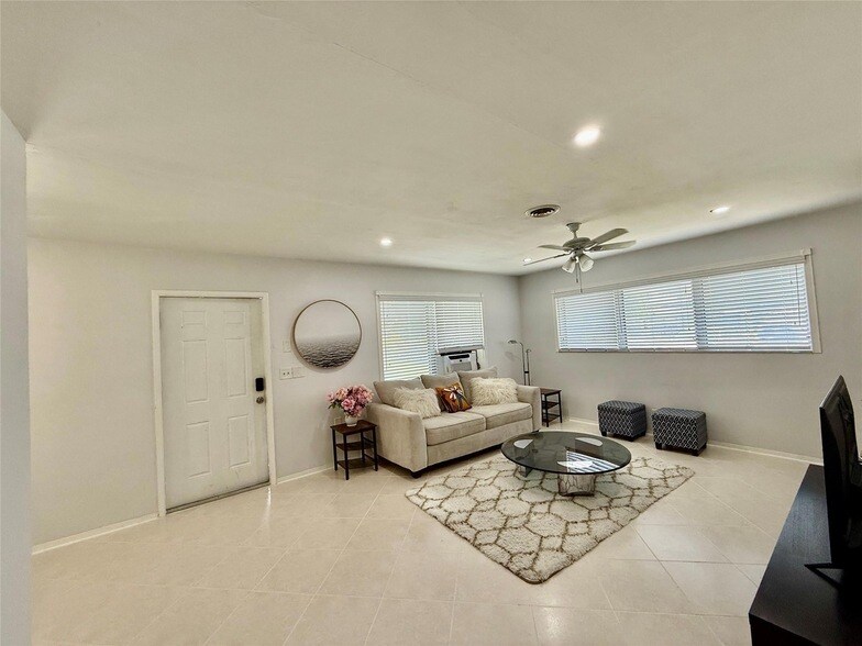 Pompano Beach fully furnished yearly, monthly or seasonal rental. Rates vary based on length of stay. This spacious 1 bed, 1 bath unit features a full kitchen & dining area & is turn key with everything you need. Bring your toothbrush & move right in. Water, electric & internet Included in rent. PETS WELCOME, no breed or size restrictions. No HOA & quick approval. Tile flooring, bedroom w/ seating area, bathroom with tub, 2 TV's, open living room, fully stocked kitchen w/ all glassware, cooking essentials, silverware & everything you need for all the comforts of home. Laundry room w/ new washer/dryer avail. 24/7 on premises & plenty of parking (work trucks OK). Only 7 units on the premises. Walk to the beach, shopping, restaurants, pickellball, gyms & everything Pompano Beach has to offer.