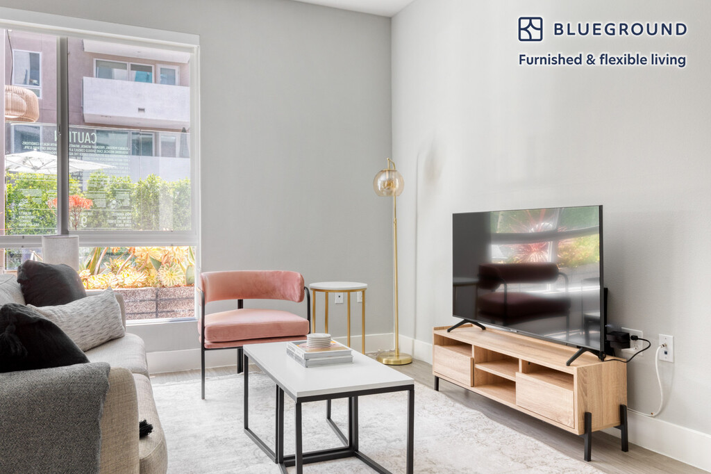 Feel at home wherever you choose to live with Blueground. You’ll love this pretty West Gateway furnished one bedroom apartment with its modern decor, fully equipped kitchen, and exquisite living room. Ideally located, you’re close to all the best that Long Beach has to offer! (ID #LAX737) The advertised rate of $2,710/month is the lowest available price, based on a 11 month(s) and 29 day(s) stay with a move-in date of April 24, 2026. Rates vary depending on the duration of stay, season, and other parameters. For exact pricing and additional pricing components, please visit our website and enter your desired move-in and move-out dates. The rate is applicable when billed upfront; it can be higher if billed in multiple payments. Brokers are welcome to reach out. Were you looking for an unfurnished lease? Try Blueground instead and upgrade from unfurnished to furnished living: - Furnished at rates comparable to unfurnished - No setup or furniture costs - save thousands - Move-in ready - save time, just bring your suitcase Designed with you in mind Gorgeous furniture, fully equipped kitchen, smart TV, and a premium wireless speaker are just a few of the amenities you’ll find inside this one bedroom apartment. Ideally located in Long Beach, you’ll find a lot to love outside as well. When you’re ready to relax, you’ll be happy to discover every Blueground bedroom comes with superior quality mattresses, luxury linens, and cozy towels. We handle everything so you can simply show up and start living. This apartment also offers in-apartment laundry. Sleeping arrangements King Bed, 70.8in/180cm Amenities Building amenities unique to this one bedroom apartment include an on-site: - BBQ Area - Dryer - Elevator - Swimming pool - Washing machine - Lounge - Parking - Pets allowed Arrival and ongoing support The entire apartment is yours to enjoy! Throughout your stay, you’ll have access to our Client Experience team through the Blueground App. You can schedule additional cleanings, submit maintenance requests, and view our neighborhood recommendations with just a few taps. We’ll share all details upon confirmation of your stay. Other things to note Building amenities may have an extra cost. This Blueground apartment has flexible lease options, allowing you to book it for one month, a year, or more. Pets are welcome, though weight limits and breed restrictions apply and may incur fees. Parking is offered based on availability and is subject to a fee. We take great pride in ensuring every photo displayed is shot in our own units with our actual furnishings. That said, we regularly refresh our decor and furniture arrangement, which may differ from what’s pictured. [SI]