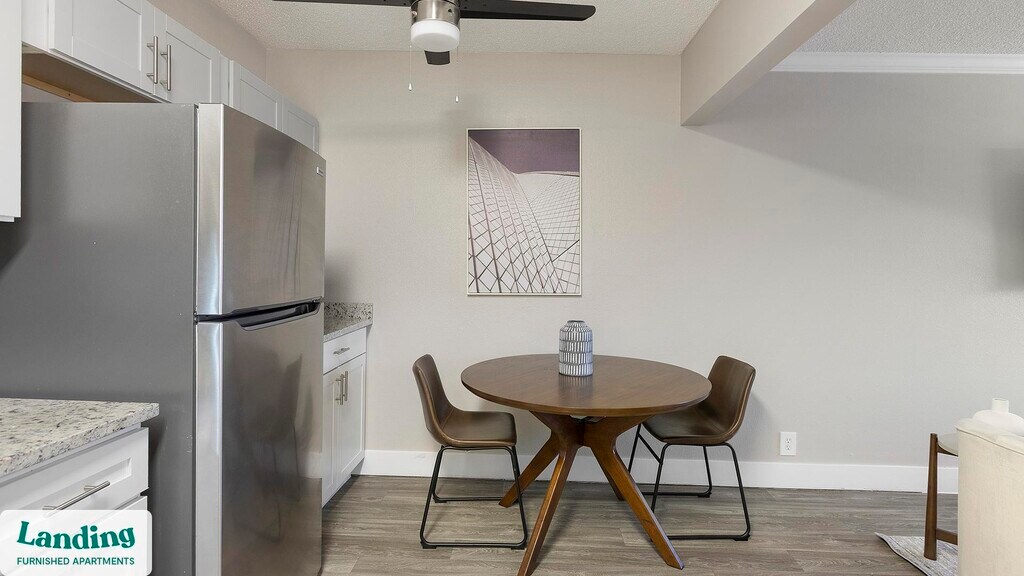 Landing offers flexible lease terms from weeks to months. Please always visit our website or contact us for the latest pricing & availability. Stay longer, save more: 6-Month Minimum base rent: starts at $1355/mo 12-Month Minimum base rent: starts at $1455/mo Landing offers flexible leases across a network of over 35,000 fully-furnished apartments throughout 375+ cities so you can rent on your terms, practically anywhere, and avoid the hassle of paying deposits or application fees. Visit to learn about all the benefits of a Landing membership, see our competitive up-to-date pricing, explore available apartments, take virtual tours, and make reservations online without jumping through traditional rental hoops. Landing's apartments at Asher on Valley View are designed for comfortable, easy living, with the ability to stay as long as you like. Experience living with Landing Every apartment is outfitted with all the modern essentials including: custom-designed furnishings, a fully-equipped kitchen with deluxe stainless steel appliances, a gourmet coffee maker, premium linens, Smart TVs, and incredibly fast, reliable internet for working from home. When you live with Landing, you'll enjoy a hassle-free experience with the added benefit of 24/7 access to our dedicated member experience team. Some of the nitty-gritty: a background check and proof of income are required; we're completely smoke-free; bundled utility packages and pricing vary based on length of stay; pet-friendly options available; listed price reflects a 12-month minimum stay.