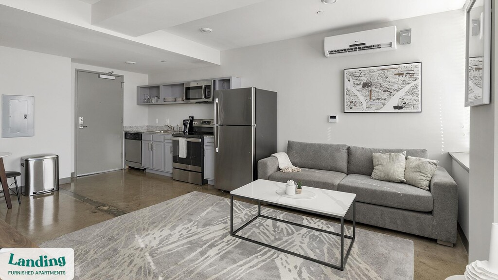 Landing offers flexible lease terms from weeks to months. Please always visit our website or contact us for the latest pricing & availability. Stay longer, save more: 6-Month Minimum base rent: starts at $1726/mo 12-Month Minimum base rent: starts at $1449/mo Landing offers flexible leases across a network of over 35,000 fully-furnished apartments throughout 375+ cities so you can rent on your terms, practically anywhere, and avoid the hassle of paying deposits or application fees. Visit to learn about all the benefits of a Landing membership, see our competitive up-to-date pricing, explore available apartments, take virtual tours, and make reservations online without jumping through traditional rental hoops. Landing's apartments at Lofts at American Life are designed for comfortable, easy living, with the ability to stay as long as you like. Experience living with Landing Every apartment is outfitted with all the modern essentials including: custom-designed furnishings, a fully-equipped kitchen with deluxe stainless steel appliances, a gourmet coffee maker, premium linens, Smart TVs, and incredibly fast, reliable internet for working from home. When you live with Landing, you'll enjoy a hassle-free experience with the added benefit of 24/7 access to our dedicated member experience team. Some of the nitty-gritty: a background check and proof of income are required; we're completely smoke-free; bundled utility packages and pricing vary based on length of stay; pet-friendly options available; listed price reflects a 12-month minimum stay.