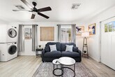 Feel at home in this charming single-story apartment featuring a 1-bedroom and 1 full bath layout, complete with a king-size bed. Enjoy the convenience of an in-unit washer and dryer, central AC and heating, and two smart TVs. The apartment is fully furnished and offers a full kitchen and dining set, making it perfect for a comfortable stay. With blackout curtains and high-speed WiFi, this apartment ensures a relaxing and connected living experience. The fully equipped kitchen includes a full-size fridge, 4-burner stove, microwave, oven, dishwasher, air fryer, blender, and cookware. Enjoy your morning coffee with the provided coffee maker, ground coffee, and coffee mugs. The kitchen also features seasoning, drinking and wine glasses, making it ideal for any culinary endeavor. Pets are welcome with a non-refundable fee of $150 per pet. Enjoy the convenience of free parking during your stay. Located just 6.5 miles from Downtown Phoenix, this apartment offers easy access to various attractions such as Chase Field, Phoenix Rising FC Stadium, and the Phoenix Zoo. With close proximity to hospitals like Saint Joseph's Hospital and Banner - University Medical Center, and universities such as Grand Canyon University, this location is ideal for both leisure and business travelers. The Phoenix Airport is just 10.4 miles away, ensuring convenient travel connections. Self check-in is available with a smart lock and lockbox for your convenience. The apartment is pet-friendly with a non-refundable pet fee. Smoking and parties are not allowed, ensuring a peaceful environment for all guests. Includes a desk and chair, making it a remote work-friendly space with high-speed WiFi to support all your work-from-home needs. [SI]