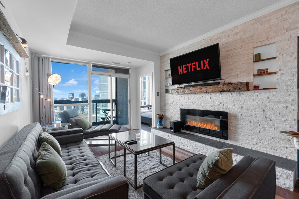 The advertised rate of C$3,665/month is the lowest available price, based on a 30 day(s) stay with a move-in date of March 17, 2026. Rates vary depending on the duration of stay, season, and other parameters. For exact pricing and additional pricing components, please visit our website and enter your desired move-in and move-out dates. The rate is applicable when billed upfront; it can be higher if billed in multiple payments. Feel at home in this unit that is perfect for international visitors, families, and business travelers. This unit offers over 650 ft² / 60m² of space. This space features high-speed fiber internet and Wi-Fi, a smart HD TV, a pool and hot tub in the building, a gym and sauna in the building, and a private balcony with outdoor seating available seasonally. It also includes a fully equipped kitchen with appliances including a fridge and stove, and an in-suite washer and dryer. Full sets of hotel-quality bedding and fresh towels are provided. Free secured parking is available for 1 car. Located just 5 to 10 minutes away from all major attractions, this unit is also located 7 minutes from CN Tower, Metro Toronto Convention Centre, and Rogers Centre. Enjoy an excellent walk score of 90 and an excellent transit score of 91. There is no smoking allowed anywhere on the premises, and failure to comply may result in a penalty up to $1000. No more than the stated number of guests in the reservation may stay overnight, unless agreed otherwise. Failure to report the accurate number of overnight guests may result in an immediate cancellation of your stay. Pets, parties, or illegal drugs of any kind are not allowed anywhere on the property (inside or outside). Late checkout beyond the scheduled check-out time will incur fees of $50 per hour, unless a different time has been agreed otherwise. Toilet paper, garbage bags, and basic toiletries will be provided at the beginning of stays of 1 week or longer, after which it will be the guest's responsibility to provide these items. [SI]
