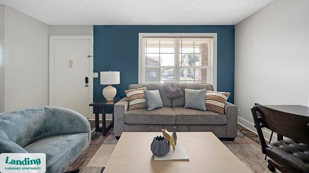 Landing offers flexible lease terms from weeks to months. Please always visit our website or contact us for the latest pricing & availability. Stay longer, save more: 6-Month Minimum base rent: starts at $1797/mo 12-Month Minimum base rent: starts at $1544/mo Landing offers flexible leases across a network of over 35,000 fully-furnished apartments throughout 375+ cities so you can rent on your terms, practically anywhere, and avoid the hassle of paying deposits or application fees. Visit to learn about all the benefits of a Landing membership, see our competitive up-to-date pricing, explore available apartments, take virtual tours, and make reservations online without jumping through traditional rental hoops. Landing's apartments at Reserve at Drakes Creek are designed for comfortable, easy living, with the ability to stay as long as you like. Experience living with Landing Every apartment is outfitted with all the modern essentials including: custom-designed furnishings, a fully-equipped kitchen with deluxe stainless steel appliances, a gourmet coffee maker, premium linens, Smart TVs, and incredibly fast, reliable internet for working from home. When you live with Landing, you'll enjoy a hassle-free experience with the added benefit of 24/7 access to our dedicated member experience team. Some of the nitty-gritty: a background check and proof of income are required; we're completely smoke-free; bundled utility packages and pricing vary based on length of stay; pet-friendly options available; listed price reflects a 12-month minimum stay.