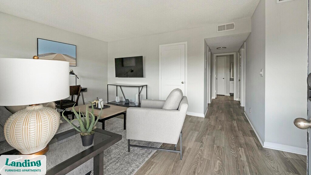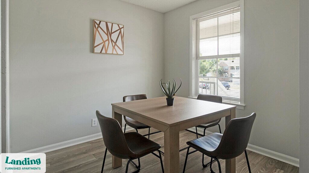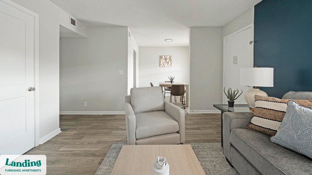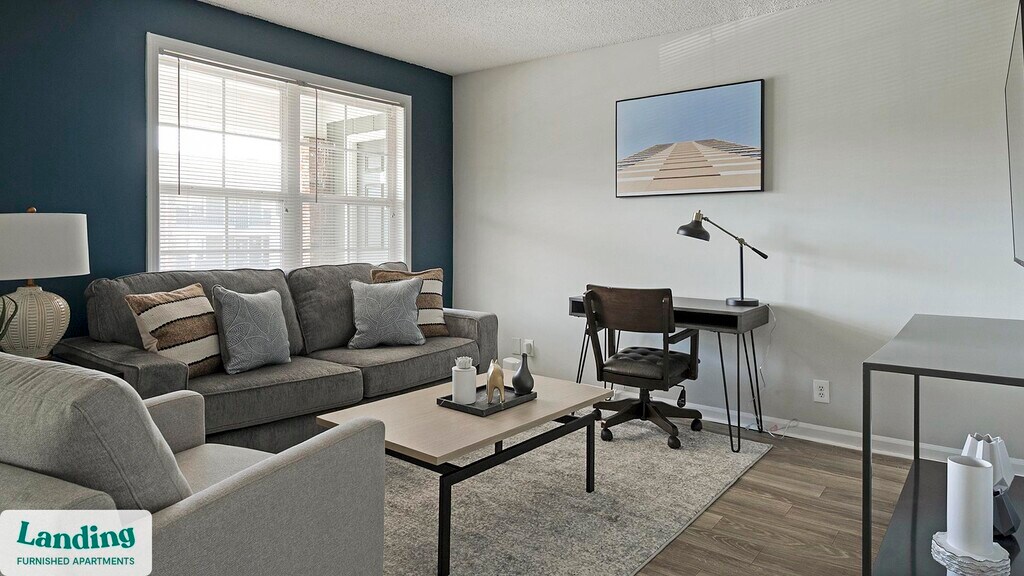 Landing offers flexible lease terms from weeks to months. Please always visit our website or contact us for the latest pricing & availability. Stay longer, save more: 6-Month Minimum base rent: starts at $1953/mo 12-Month Minimum base rent: starts at $1516/mo Landing offers flexible leases across a network of over 35,000 fully-furnished apartments throughout 375+ cities so you can rent on your terms, practically anywhere, and avoid the hassle of paying deposits or application fees. Visit to learn about all the benefits of a Landing membership, see our competitive up-to-date pricing, explore available apartments, take virtual tours, and make reservations online without jumping through traditional rental hoops. Landing's apartments at Reserve at Drakes Creek are designed for comfortable, easy living, with the ability to stay as long as you like. Experience living with Landing Every apartment is outfitted with all the modern essentials including: custom-designed furnishings, a fully-equipped kitchen with deluxe stainless steel appliances, a gourmet coffee maker, premium linens, Smart TVs, and incredibly fast, reliable internet for working from home. When you live with Landing, you'll enjoy a hassle-free experience with the added benefit of 24/7 access to our dedicated member experience team. Some of the nitty-gritty: a background check and proof of income are required; we're completely smoke-free; bundled utility packages and pricing vary based on length of stay; pet-friendly options available; listed price reflects a 12-month minimum stay.
