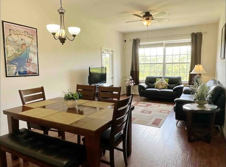 FULLY FURNISHED Windsor Palms Resort. Gorgeous 3 bedrooms and 2 bathrooms condo is fully equipped kitchen with appliances, as well as washer and dryer. The master bedroom has a king size bed, the second bedroom has a queen size bed, and the third bedroom has two twins beds. Community amenities includes salt water pool, 24 security gate, hot tub, sand volleyball court, tennis courts, games room, fitness center, bbq area, and more.