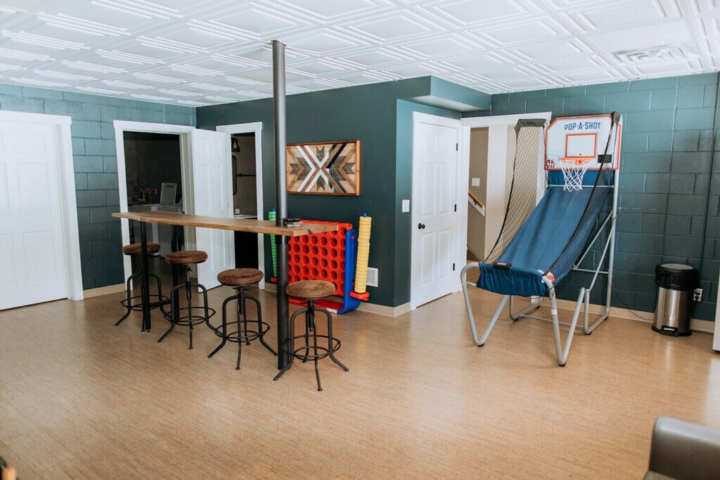 Experience the ultimate secluded retreat in this exclusive cabin surrounded by 55 acres of forest, hills, and meadows. With two large ponds for swimming, fishing, kayaking, and paddle boarding, and over 2 miles of private trails for hiking, mountain biking, ATV, and hunting, this cabin offers a perfect blend of luxury and adventure. Relax in the hot tub, enjoy the fireplace and fire pit, and feel at home in this fully remodeled cabin with luxury amenities, just 2 hours from Hocking Hills. This exquisite cabin retreat combines luxury, comfort, and adventure in a beautifully designed space. The spacious open-concept living area features 15-foot vaulted ceilings and a stunning natural stone fireplace, complemented by plush leather couches and swivel chairs, perfect for relaxing or playing board games. The fully remodeled kitchen and dining area boast a large dining table that seats 12 guests comfortably and a gorgeous kitchen island with a waterfall edge, ideal for cooking and gathering. Enjoy al fresco dining on the covered upper deck, surrounded by serene natural beauty. The luxurious master suite offers vaulted ceilings, a king-sized bed, a private full bath, and a spacious tiled walk-in shower for a spa-like experience. The entertainment-filled game room features an industrial bar vibe with shuffleboard, arcade games, a large TV, and bar seating. Outdoor adventures await with a brand new 8-person hot tub, fishing, kayaking, paddle boarding, and hiking on the property, making it perfect for couples seeking indoor luxury and outdoor adventure. The cabin is stocked with basic toiletries, bed linens, kitchen necessities, cleaning supplies, laundry detergent, and various board games, cards, and yard games for entertainment. Two fishing poles, two kayaks, and two paddle boards are available for use, and firewood is supplied for guest use. A pet fee of $150 per pet applies, with a maximum of 2 pets allowed. Guests have exclusive access to The Main Cabin at The Hideaway and the surrounding property, including hiking trails, forests, meadows, and ponds. The cabin is wheelchair accessible with a ramp to enter the main level, and the master bathroom features a walk-in shower with a grab bar for safety. There is a laundry room in the lower level of the cabin with two washers and two dryers for use during your stay. The surrounding area offers a paved driveway and parking areas with plenty of room to park a boat trailer if enjoying Seneca Lake. A renters agreement will be sent via email after booking, and a security hold of $250 will be placed on your credit card, similar to what hotels do for incidentals. The security hold will be automatically and fully refunded 3 days after your stay if no excess cleaning or damage occurs.