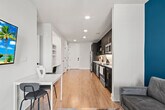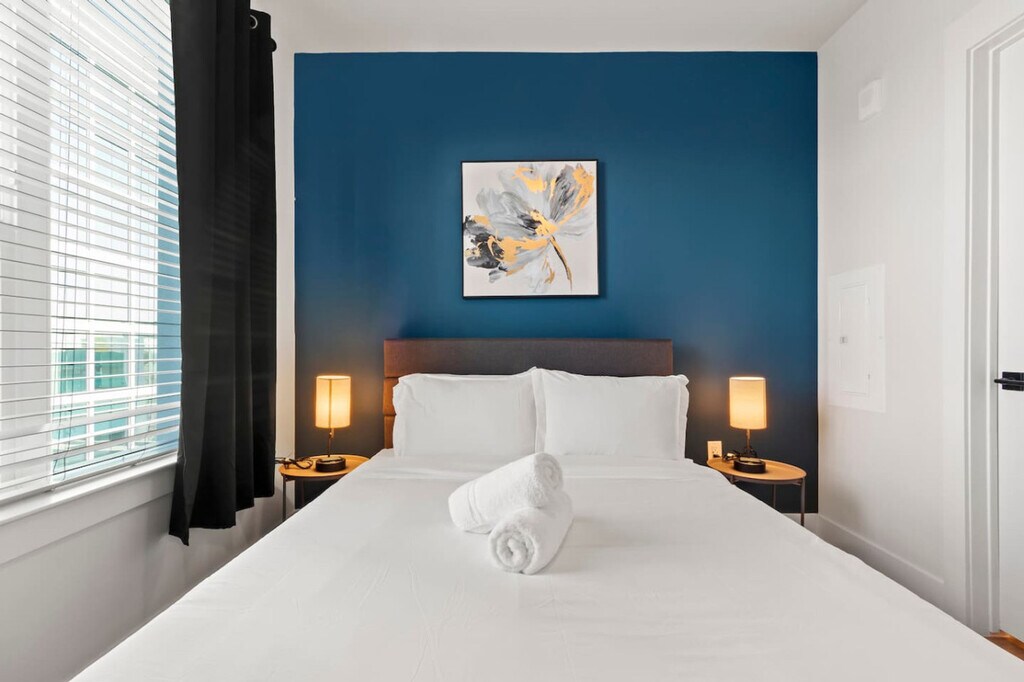 Feel at home in this amazing studio in Tampa, perfect for your business trip. Enjoy a quick ride to the beach or downtown from this perfectly located apartment, featuring a luxury Nectar Queen Bed for a good night's sleep. The studio offers a peaceful and quiet space to relax, with brand new amenities, awesome courtyards, a pool, and a gym. The combined living and dining area is furnished with LED lighting and modern furniture, creating a private oasis to relax. Plenty of natural light illuminates the space, complemented by wooden floors and finishes for a pleasant and modern ambiance. The kitchen is equipped with all the essentials to cook your favorite meals, and in-unit laundry is available for your convenience. Free parking is available for guests. A pet cleaning fee of $45 per pet applies, with a weight limit of 35 lbs and restrictions on certain breeds. Early check-in and late check-out are available for a fee, subject to availability. A $100 fee applies for a missing keyfob. Minutes away from Downtown Tampa, this studio offers convenient access to major roads and highways. Enjoy nearby attractions such as Raymond James Stadium, Amalie Arena, and a variety of dining options within walking distance. Beaches like Ben T Davis Beach and Madeira Beach are just a short drive away, making it easy to explore all that Tampa has to offer. Smoking is prohibited and will result in a $500 fine. No parties are allowed, with violations resulting in a $1,000 fine and immediate eviction with no refund. A noise curfew is in place from 10 PM to 7 AM on weekdays and 10 PM to 8 AM on weekends, with penalties for violations. Self-check-in and check-out are available via smart lock. Guests must be 21+ to book a reservation, and no entry is allowed for unregistered guests. The apartment is equipped with Minut Noise Detectors to monitor noise levels, and surveillance cameras are present in common areas. Stay connected with free high-speed Wi-Fi offering up to 1GBPS upload and download speeds. A 50" HD Smart TV is available for entertainment, and the apartment features AC and heating for full temperature control. [SI]
