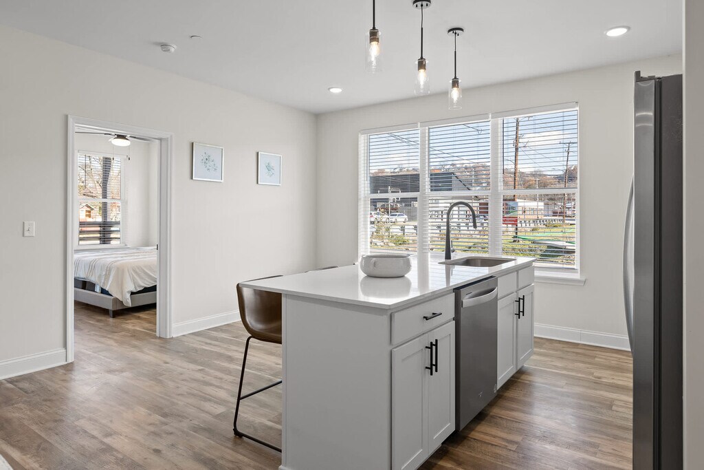The advertised rate of $2,363/month is the lowest available price, based on a 30 day(s) stay with a move-in date of August 2, 2026. Rates vary depending on the duration of stay, season, and other parameters. For exact pricing and additional pricing components, please visit our website and enter your desired move-in and move-out dates. The rate is applicable when billed upfront; it can be higher if billed in multiple payments. Feel at home in this brand-new 2-bedroom apartment that combines modern style and ultimate comfort in a beautifully updated building. With sleek solid surface countertops and high-end appliances, this apartment ensures a modern living experience. Bright and airy, it is flooded with natural light and provides plenty of space for relaxation and entertainment. This generously sized two-bedroom, two-bath unit features stunning interiors, ample closet space, and a modern open kitchen layout that caters to your lifestyle. The interiors boast high-quality solid-surface countertops, large windows that fill the space with natural light, and an open floor plan that creates a welcoming ambiance, making it the perfect home away from home. Pets are welcome with a non-refundable pet fee. Pets must be crated when left unattended and are not allowed on furniture or beds. All waste must be cleaned up from the yard. If there is evidence of pet hair on the furniture, excess hair in the home, stains, or waste found in the yard or home, you will be charged the cost to clean this. Located in the lively East Chattanooga neighborhood, this apartment is surrounded by a mix of residential, commercial, and recreational spaces. The area blends historic charm with modern development, offering a variety of dining options, cafes, and shops. Just a short drive from downtown, residents have easy access to cultural attractions like museums, parks, and the Tennessee Riverfront. With convenient access to major highways, this vibrant neighborhood offers both urban convenience and local character, making it an ideal spot for those seeking a dynamic community. Guests must be at least 21 years of age to rent this property. Smoking is prohibited, and if our cleaning crew reports any signs of smoking in or around the home, an automatic $500 damage charge will be incurred. The same charge applies if cigarette butts are found outside of the home. If marijuana is smoked in or around the home, a $500 fee will be charged, and details about the reservation may be turned over to the appropriate authorities. Parties are prohibited at the home, and quiet hours are between 10 PM and 7 AM. If you violate quiet hours and disturb the neighbors, your reservation will be canceled, and you will be required to leave the property immediately without any refunds. Noise may be monitored with exterior cameras and/or noise monitoring technology. You will be responsible for any damage to the home or its furnishings during your stay. Please bag all trash and place it in the bins provided. There is a $100 charge for third-party trash removal if an excessive amount of trash is left at the property. The apartment offers a remote work-friendly environment with contact-free check-in via a digital door code, ensuring maximum privacy. A laptop computer is not included. [SI]