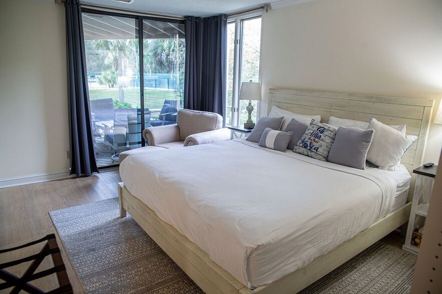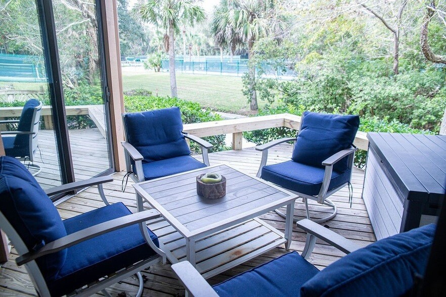Furnished and Utilities Included Rental Property in Amelia Island Plantation (Omni Resort). Beautifully furnished 2BR/2BA Courtside Villa just steps to the complex pool and a short walk to the beach. Enjoy park amenities within the prestigious Omni Amelia Island Resort. This spacious first-floor unit is beautifully furnished and offers private patios, plenty of inside/outside storage, in-unit washer/dryer, and provided internet and garbage. The roomy primary suite is a dreamy coastal retreat with a comfy king-sized bed, a private ensuite bath, and its own shady covered patio perfect for morning coffee or an afternoon nap. The cheerful guest suite is just as inviting, with two queen beds, a mini fridge for anytime snacks, and another private patio for soaking up the laid-back vibes. The guest suite also has its own outside entrance and may be locked off from the other living spaces for added privacy, if desired. Gather around the dining table with seating for up to 8, then kick back on the cozy sleeper sectional in the living area - plenty of space for guests. Enjoy nearby beach access, tennis, pickleball, kayaking, dining, golf, spa, and shopping. Move-in ready coastal living awaits!