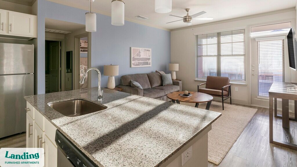 Landing offers flexible lease terms from weeks to months. Please always visit our website or contact us for the latest pricing & availability. Stay longer, save more: 6-Month Minimum base rent: starts at $2170/mo 12-Month Minimum base rent: starts at $2065/mo Landing offers flexible leases across a network of over 35,000 fully-furnished apartments throughout 375+ cities so you can rent on your terms, practically anywhere, and avoid the hassle of paying deposits or application fees. Visit to learn about all the benefits of a Landing membership, see our competitive up-to-date pricing, explore available apartments, take virtual tours, and make reservations online without jumping through traditional rental hoops. Landing's apartments at Wyldewood Gosling are designed for comfortable, easy living, with the ability to stay as long as you like. Experience living with Landing Every apartment is outfitted with all the modern essentials including: custom-designed furnishings, a fully-equipped kitchen with deluxe stainless steel appliances, a gourmet coffee maker, premium linens, Smart TVs, and incredibly fast, reliable internet for working from home. When you live with Landing, you'll enjoy a hassle-free experience with the added benefit of 24/7 access to our dedicated member experience team. Some of the nitty-gritty: a background check and proof of income are required; we're completely smoke-free; bundled utility packages and pricing vary based on length of stay; pet-friendly options available; listed price reflects a 12-month minimum stay.