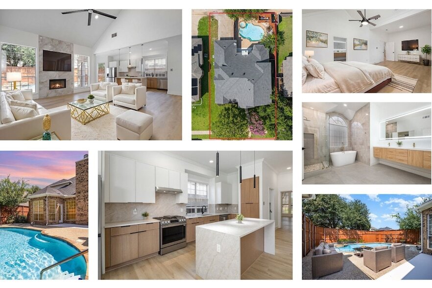 Don t miss this incredible Plano home - ready for immediate move-in! Fully remodeled from top to bottom, this stunning property sits on a quiet street in the desirable Hunters Glen subdivision. Redesigned with modern finishes and high-end upgrades, this 3,341 SF residence features 6 bedrooms and 3 full baths, perfectly blending style, comfort, and functionality at every turn. Inside, the main living area impresses with soaring ceilings, a striking floor-to-ceiling tiled fireplace, designer lighting, and a seamless flow between the living, dining, and kitchen spaces ideal for both everyday living and entertaining. At the heart of the home, the newly transformed kitchen exudes sophistication with sleek European cabinetry, Taj Mahal quartz countertops, a waterfall eat-in island, stainless steel appliances, and a walk-in pantry. The spacious primary suite boasts a beautifully redesigned, luxurious ensuite bath featuring a frameless walk-in shower, a standalone soaking tub, a double vanity, and a large walk-in closet. The first floor also offers another bedroom and a new full bath - perfect for a home office or guest suite. Upstairs, four additional bedrooms share a gorgeous, fully updated bath. Step outside to your resort-style backyard oasis, featuring a sparkling pool and spa designed for both relaxation and fun. Whether hosting friends and family or unwinding after a long day, this versatile outdoor space provides everything you need for comfort and enjoyment. Conveniently located near top-rated schools, shopping, and entertainment, with quick access to Highways 121, 75, and the DNT, it offers unbeatable convenience to all your favorite destinations. This home is also within walking distance of a fantastic park just a few houses away, as well as the top-rated Bethany Elementary School, with no HOA. Don t miss your chance to make this exceptional property your next home - schedule your private tour today!