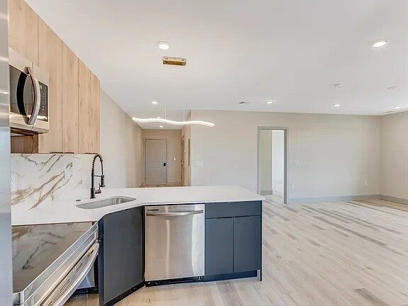 Property Id: 2206786 Experience luxurious city living with stunning Philadelphia skyline views. This newly built property offers modern sophistication from the moment you step inside. The bright foyer opens to a spacious, open-concept layout featuring new luxury plank flooring and a chef-inspired kitchen with stainless steel appliances, sleek two-tone cabinetry, a white marble-look backsplash, and quartz countertops with an undermount sink and matte black fixtures. A wavy linear pendant light adds a bold, contemporary touch. Enjoy unmatched outdoor living on the expansive roof deck with unobstructed skyline views, perfect for relaxing or entertaining. Select units also include private balconies for your own outdoor retreat. With its fresh neutral palette and refined finishes, this residence offers the ideal balance of comfort and high-end design, making it a perfect haven for modern city renters.