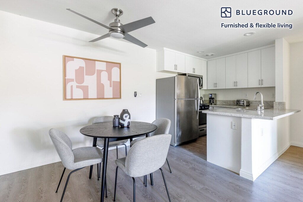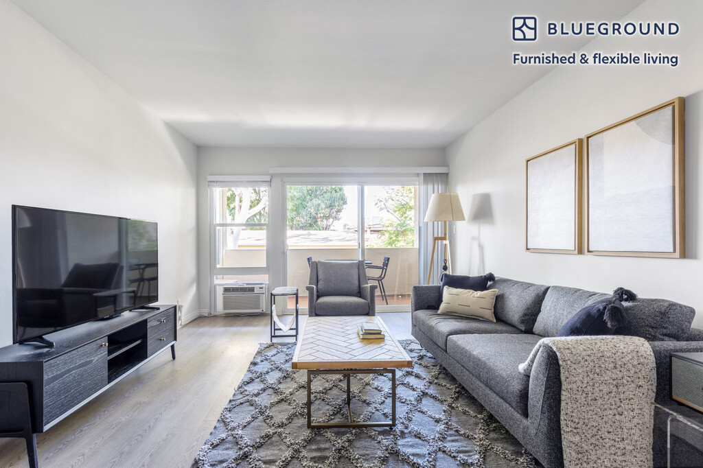 Feel at home wherever you choose to live with Blueground. You’ll love this beautiful Brentwood furnished one bedroom apartment with its modern decor, fully equipped kitchen, and exquisite living room. Ideally located, you’re close to all the best that Los Angeles has to offer! (ID #LAX342) The advertised rate of $2,560/month is the lowest available price, based on a 3 month(s) stay with a move-in date of December 7, 2025. If you’re looking for a 1-year stay, the rate is $3,070/month. Rates vary depending on the duration of stay, season, and other parameters. For exact pricing and additional pricing components, please visit our website and enter your desired move-in and move-out dates. The rate is applicable when billed upfront; it can be higher if billed in multiple payments. Brokers are welcome to reach out. Were you looking for an unfurnished lease? Try Blueground instead and upgrade from unfurnished to furnished living: - Furnished at rates comparable to unfurnished - No setup or furniture costs - save thousands - Move-in ready - save time, just bring your suitcase Designed with you in mind Thoughtfully designed with bespoke finishes, modern furnishings, and a fully equipped kitchen, you’ll enjoy that “I’m home” feeling with this Blueground apartment. Whether you’re lounging in your beautiful living room streaming the latest and greatest entertainment on the smart TV or premium wireless speaker, or getting some well-earned rest on the superior quality mattress with luxury linens, you’ll fall in love with everything this Brentwood apartment has to offer. Sleeping arrangements King Bed, 70.8in/180cm Amenities Building amenities unique to this one bedroom apartment include an on-site: - Dryer in building - Elevator - Swimming pool - Washing machine in building - Parking - Pets allowed Arrival and ongoing support The entire apartment is yours to enjoy! Throughout your stay, you’ll have access to our Client Experience team through the Blueground App. You can schedule additional cleanings, submit maintenance requests, and view our neighborhood recommendations with just a few taps. We’ll share all details upon confirmation of your stay. Ideally Located This furnished apartment is located in Brentwood, a small area on the Westside of Los Angeles. It is well-known for being one of the wealthiest in the county. The quiet neighborhood features tree-lined streets and impressive, upscale homes. San Vicente Boulevard is the main thoroughfare and is full of Italian eateries and cozy cafes. In addition, the Getty Center museum is also located in Brentwood and offers a world-class art collection that is ideal for culture lovers. Other things to note Building amenities may have an extra cost. This Blueground apartment has flexible lease options, allowing you to book it for one month, a year, or more. Pets are welcome, though weight limits and breed restrictions apply and may incur fees. Parking is offered based on availability and is subject to a fee. We take great pride in ensuring every photo displayed is shot in our own units with our actual furnishings. That said, we regularly refresh our decor and furniture arrangement, which may differ from what’s pictured. Also note - Ongoing construction in close proximity; construction sounds may occasionally be heard