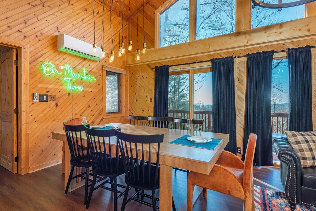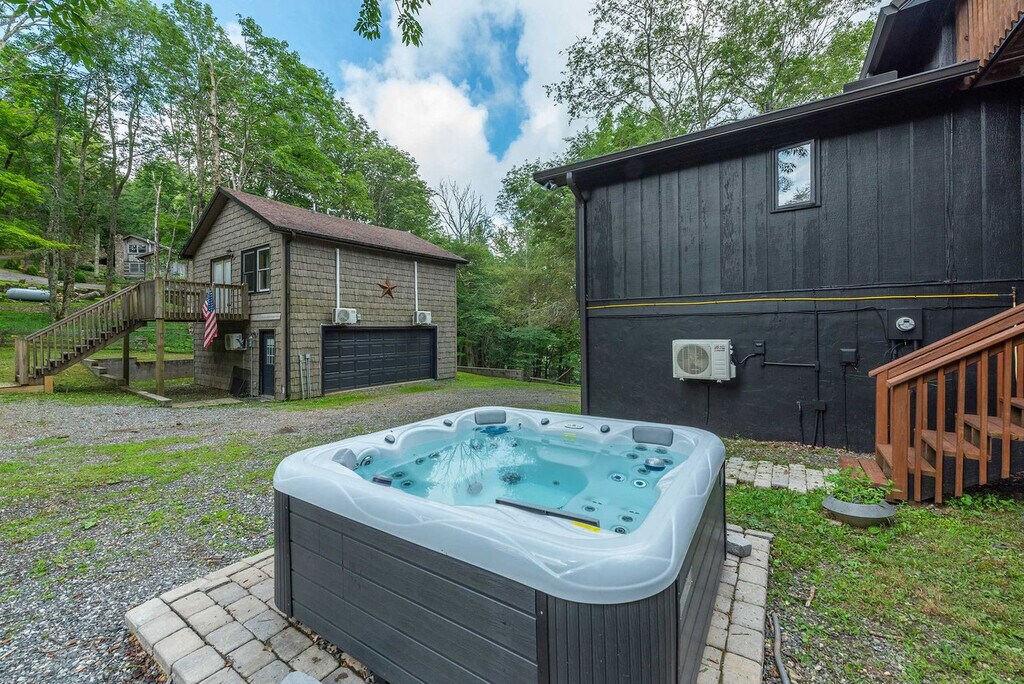 Feel at home in this 6-bedroom house in Mars Hill, NC, nestled in the stunning Wolf Laurel Resort & Country Club. This home comfortably accommodates up to 20 guests. This home offers multiple decks with mountain views, a hot tub, a fire pit, an outdoor patio/dining area, a BBQ grill, and an indoor fireplace. The chef's kitchen is fully stocked with high-end appliances, a large refrigerator, ample cabinetry, cooking space, and coffee makers. Enjoy the living room with a 43" smart TV, large plush sofa, candle-lit chandelier, indoor fireplace, and expansive windows. The movie/family room includes a smart TV, beanbags, a plush sofa, a wood burner, and air conditioning. The game room features a pool table, ping pong, air hockey, Connect 4, Jenga, board games, and arcade games. Access to the golf course and restaurant is available for an additional weekly fee of $150 when the Country Club reopens on May 1, 2025. Up to 2 dogs are allowed for $125 per stay, no cats, please. Located within the scenic Wolf Laurel Resort & Country Club, this home offers complimentary access to a heated swimming pool, tennis courts, pickleball courts, a basketball court, horseshoe pits, children’s playgrounds, and a trout pond. The home is just half a mile from a trailhead leading to the iconic Appalachian Trail and under 2 miles from Hatley Pointe Ski Resort. Nearby attractions include Wolf Ridge Ski Resort, Big Bald, Southern Appalachian Repertory Theatre, Mars Hill University, and Pisgah National Forest. Local dining options include Stack House, The Original Papa Nicks Take Out, Hickory Nut Gorge Brewery at Mars Hill, Wagon Wheel, and Mars Hill American Grill. 4WD is highly recommended during inclement weather. Check-in is at 4pm and check-out is at 10am. Guests must be 21 years or older to book this property. No parties are allowed, and violations may result in immediate termination of the stay. We kindly ask that your dog is crate trained and that you pick up after your dog. Includes a dedicated workspace. [SI]