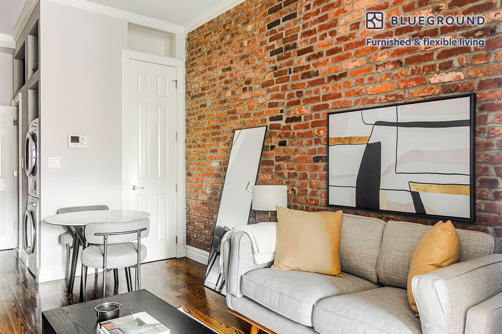 Feel at home wherever you choose to live with Blueground. You’ll love this bright West Village furnished one bedroom apartment with its modern decor, fully equipped kitchen, and comfortable living room. Ideally located, you’re close to all the best that New York has to offer! (ID #NYC1951) The advertised rate of $6,570/month is the lowest available price, based on a 11 month(s) and 29 day(s) stay with a move-in date of January 3, 2026. Rates vary depending on the duration of stay, season, and other parameters. For exact pricing and additional pricing components, please visit our website and enter your desired move-in and move-out dates. The rate is applicable when billed upfront; it can be higher if billed in multiple payments. Brokers are welcome to reach out. Were you looking for an unfurnished lease? Try Blueground instead and upgrade from unfurnished to furnished living: - Furnished at rates comparable to unfurnished - No setup or furniture costs - save thousands - Move-in ready - save time, just bring your suitcase Designed with you in mind Thoughtfully designed with bespoke finishes, modern furnishings, and a fully equipped kitchen, you’ll enjoy that “I’m home” feeling with this Blueground apartment. Whether you’re lounging in your sophisticated living room streaming the latest and greatest entertainment on the smart TV or premium wireless speaker, or getting some well-earned rest on the superior quality mattress with luxury linens, you’ll fall in love with everything this West Village apartment has to offer. This apartment also offers in-apartment laundry. Sleeping arrangements Queen Bed, 63in/160cm Amenities Building amenities unique to this one bedroom apartment include an on-site: - Dryer - Elevator - Washing machine - Pets allowed Arrival and ongoing support The entire apartment is yours to enjoy! Throughout your stay, you’ll have access to our Client Experience team through the Blueground App. You can schedule additional cleanings, submit maintenance requests, and view our neighborhood recommendations with just a few taps. We’ll share all details upon confirmation of your stay. Ideally Located This furnished rental is located in the West Village. Cute storefronts and some cobblestone streets give the charming neighborhood the feel of a quaint small town. Populated with shoppers, diners and art lovers. The historically artistic area has numerous piano bars, cabarets, and theaters to discover. Both Times Square and Wall Street are just 15 minutes away by subway. Other things to note This Blueground apartment has flexible lease options, allowing you to book it for one month, a year, or more. Pets are welcome, though weight limits and breed restrictions apply and may incur fees. Brokes CYOF. We take great pride in ensuring every photo displayed is shot in our own units with our actual furnishings. That said, we regularly refresh our decor and furniture arrangement, which may differ from what’s pictured. [SI]