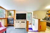 Feel at home in this 1-bedroom, 1-bath Olivebridge vacation rental, surrounded by woodland scenery. This single-story unit with a private entrance is on the 2nd floor and requires stairs to access. This cozy fireside apartment features a smart TV with Netflix, Hulu, and Amazon Prime, a gas fireplace, and a dining table. The full-size kitchen includes a refrigerator, stove/oven, microwave, drip coffee maker, and toaster, along with cooking basics, dishware, flatware, trash bags, and paper towels. Enjoy the outdoor seating space and access to a shared laundry room. Complimentary toiletries, towels, and linens are provided, along with electric heating and a window A/C unit. Wake to rustling leaves and enjoy the private, totally secluded setting of this apartment in the forest. Browse boutiques in Woodstock, cast a line on the Ashokan Reservoir, or ride the rail trail. Later, return to the guest suite for a peaceful, quiet evening as the sun peeks through the tree canopy. The homeowner lives in the main house on-site, and a long-term tenant occupies the ground floor of the dwelling unit. Both are seniors and have completely separate and private entrances. The laundry room is shared with the long-term tenant. No pets, events, parties, or large gatherings are allowed. [SI]