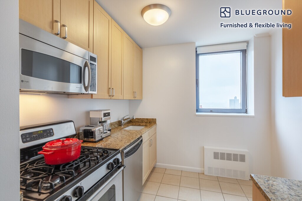 Feel at home wherever you choose to live with Blueground. You’ll love this cozy Theater District furnished two bedroom apartment with its modern decor, fully equipped kitchen, and roomy living room with great balcony views. Ideally located, you’re close to all the best that New York has to offer! (ID #NYC381) The advertised rate of $8,870/month is the lowest available price, based on a 10 month(s) and 11 day(s) stay with a move-in date of February 25, 2026. Rates vary depending on the duration of stay, season, and other parameters. For exact pricing and additional pricing components, please visit our website and enter your desired move-in and move-out dates. The rate is applicable when billed upfront; it can be higher if billed in multiple payments. Brokers are welcome to reach out. Were you looking for an unfurnished lease? Try Blueground instead and upgrade from unfurnished to furnished living: - Furnished at rates comparable to unfurnished - No setup or furniture costs - save thousands - Move-in ready - save time, just bring your suitcase Designed with you in mind Thoughtfully designed with bespoke finishes, modern furnishings, and a fully equipped kitchen, you’ll enjoy that “I’m home” feeling with this Blueground apartment. Whether you’re lounging in your bright living room streaming the latest and greatest entertainment on the smart TV or premium wireless speaker, or getting some well-earned rest on the superior quality mattress with luxury linens, you’ll fall in love with everything this Theater District apartment has to offer. Sleeping arrangements King Bed, 70.8in/180cm Double Bed, 55in/140cm Amenities Building amenities unique to this two bedroom apartment include an on-site: - Doorman - Dryer in building - Elevator - Washing machine in building - Lounge - Pets allowed Arrival and ongoing support The entire apartment is yours to enjoy! Throughout your stay, you’ll have access to our Client Experience team through the Blueground App. You can schedule additional cleanings, submit maintenance requests, and view our neighborhood recommendations with just a few taps. We’ll share all details upon confirmation of your stay. Other things to note Building amenities may have an extra cost. This Blueground apartment has flexible lease options, allowing you to book it for one month, a year, or more. Pets are welcome, though weight limits and breed restrictions apply and may incur fees. Brokes CYOF. We take great pride in ensuring every photo displayed is shot in our own units with our actual furnishings. That said, we regularly refresh our decor and furniture arrangement, which may differ from what’s pictured. Also note - Other apartments in this building are undergoing renovations, and you may hear construction noise inside your apartment from time to time [SI]