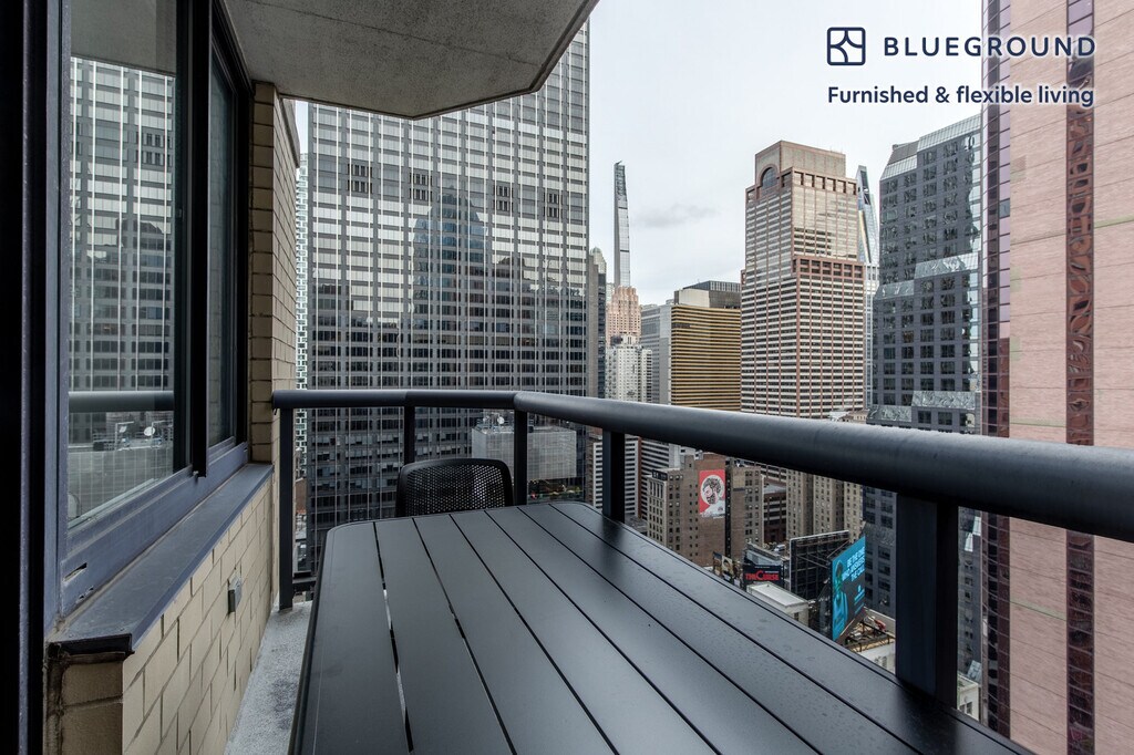 Feel at home wherever you choose to live with Blueground. You’ll love this charming Theater District furnished one bedroom apartment with its modern decor, fully equipped kitchen, and roomy living room with great balcony views. Ideally located, you’re close to all the best that New York has to offer! (ID #NYC1351) The advertised rate of $6,250/month is the lowest available price, based on a 11 month(s) and 29 day(s) stay with a move-in date of November 2, 2025. Rates vary depending on the duration of stay, season, and other parameters. For exact pricing and additional pricing components, please visit our website and enter your desired move-in and move-out dates. The rate is applicable when billed upfront; it can be higher if billed in multiple payments. Brokers are welcome to reach out. Were you looking for an unfurnished lease? Try Blueground instead and upgrade from unfurnished to furnished living: - Furnished at rates comparable to unfurnished - No setup or furniture costs - save thousands - Move-in ready - save time, just bring your suitcase Designed with you in mind Gorgeous furniture, fully equipped kitchen, smart TV, and a premium wireless speaker are just a few of the amenities you’ll find inside this one bedroom apartment. Ideally located in New York, you’ll find a lot to love outside as well. When you’re ready to relax, you’ll be happy to discover every Blueground bedroom comes with superior quality mattresses, luxury linens, and cozy towels. We handle everything so you can simply show up and start living. Sleeping arrangements Queen Bed, 63in/160cm Amenities Building amenities unique to this one bedroom apartment include an on-site: - Doorman - Dryer in building - Elevator - Washing machine in building - Lounge - Pets allowed Arrival and ongoing support The entire apartment is yours to enjoy! Throughout your stay, you’ll have access to our Client Experience team through the Blueground App. You can schedule additional cleanings, submit maintenance requests, and view our neighborhood recommendations with just a few taps. We’ll share all details upon confirmation of your stay. Other things to note Building amenities may have an extra cost. This Blueground apartment has flexible lease options, allowing you to book it for one month, a year, or more. Pets are welcome, though weight limits and breed restrictions apply and may incur fees. Brokes CYOF. We take great pride in ensuring every photo displayed is shot in our own units with our actual furnishings. That said, we regularly refresh our decor and furniture arrangement, which may differ from what’s pictured.