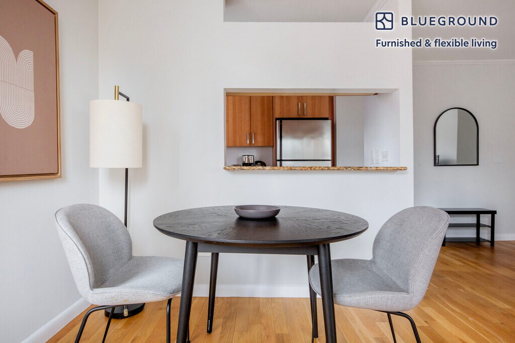 Feel at home wherever you choose to live with Blueground. You’ll love this pretty Theater District furnished one bedroom apartment with its modern decor, fully equipped kitchen, and roomy living room with great balcony views. Ideally located, you’re close to all the best that New York has to offer! (ID #NYC1413) The advertised rate of $5,930/month is the lowest available price, based on a 4 month(s) and 12 day(s) stay with a move-in date of January 8, 2026. If you’re looking for a 1-year stay, the rate is $5,610/month. Rates vary depending on the duration of stay, season, and other parameters. For exact pricing and additional pricing components, please visit our website and enter your desired move-in and move-out dates. The rate is applicable when billed upfront; it can be higher if billed in multiple payments. Brokers are welcome to reach out. Were you looking for an unfurnished lease? Try Blueground instead and upgrade from unfurnished to furnished living: - Furnished at rates comparable to unfurnished - No setup or furniture costs - save thousands - Move-in ready - save time, just bring your suitcase Designed with you in mind Gorgeous furniture, fully equipped kitchen, smart TV, and a premium wireless speaker are just a few of the amenities you’ll find inside this one bedroom apartment. Ideally located in New York, you’ll find a lot to love outside as well. When you’re ready to relax, you’ll be happy to discover every Blueground bedroom comes with superior quality mattresses, luxury linens, and cozy towels. We handle everything so you can simply show up and start living. Sleeping arrangements Queen Bed, 63in/160cm Amenities Building amenities unique to this one bedroom apartment include an on-site: - Doorman - Dryer in building - Elevator - Washing machine in building - Lounge - Pets allowed Arrival and ongoing support The entire apartment is yours to enjoy! Throughout your stay, you’ll have access to our Client Experience team through the Blueground App. You can schedule additional cleanings, submit maintenance requests, and view our neighborhood recommendations with just a few taps. We’ll share all details upon confirmation of your stay. Other things to note Building amenities may have an extra cost. This Blueground apartment has flexible lease options, allowing you to book it for one month, a year, or more. Pets are welcome, though weight limits and breed restrictions apply and may incur fees. Brokes CYOF. We take great pride in ensuring every photo displayed is shot in our own units with our actual furnishings. That said, we regularly refresh our decor and furniture arrangement, which may differ from what’s pictured. Also note - Other apartments in this building are undergoing renovations, and you may hear construction noise inside your apartment from time to time [SI]
