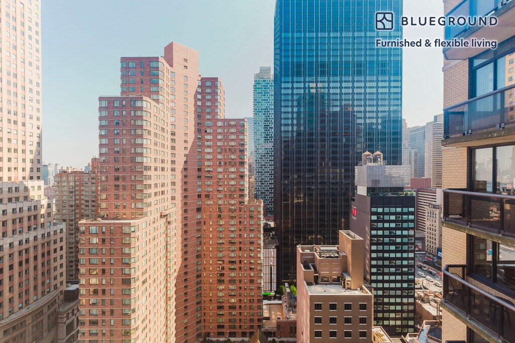 Feel at home wherever you choose to live with Blueground. You’ll love this spacious Theater District furnished one bedroom apartment with its modern decor, fully equipped kitchen, and cheery living room with great balcony views. Ideally located, you’re close to all the best that New York has to offer! (ID #NYC1541) The advertised rate of $3,400/month is the lowest available price, based on a 1 month(s) and 3 day(s) stay with a move-in date of December 23, 2025. If you’re looking for a 1-year stay, the rate is $5,340/month. Rates vary depending on the duration of stay, season, and other parameters. For exact pricing and additional pricing components, please visit our website and enter your desired move-in and move-out dates. The rate is applicable when billed upfront; it can be higher if billed in multiple payments. Brokers are welcome to reach out. Were you looking for an unfurnished lease? Try Blueground instead and upgrade from unfurnished to furnished living: - Furnished at rates comparable to unfurnished - No setup or furniture costs - save thousands - Move-in ready - save time, just bring your suitcase Designed with you in mind Thoughtfully designed with bespoke finishes, modern furnishings, and a fully equipped kitchen, you’ll enjoy that “I’m home” feeling with this Blueground apartment. Whether you’re lounging in your charming living room streaming the latest and greatest entertainment on the smart TV or premium wireless speaker, or getting some well-earned rest on the superior quality mattress with luxury linens, you’ll fall in love with everything this Theater District apartment has to offer. Sleeping arrangements Queen Bed, 63in/160cm Amenities Building amenities unique to this one bedroom apartment include an on-site: - Doorman - Dryer in building - Elevator - Washing machine in building - Lounge - Pets allowed Arrival and ongoing support The entire apartment is yours to enjoy! Throughout your stay, you’ll have access to our Client Experience team through the Blueground App. You can schedule additional cleanings, submit maintenance requests, and view our neighborhood recommendations with just a few taps. We’ll share all details upon confirmation of your stay. Other things to note Building amenities may have an extra cost. This Blueground apartment has flexible lease options, allowing you to book it for one month, a year, or more. Pets are welcome, though weight limits and breed restrictions apply and may incur fees. Brokes CYOF. We take great pride in ensuring every photo displayed is shot in our own units with our actual furnishings. That said, we regularly refresh our decor and furniture arrangement, which may differ from what’s pictured. Also note - Other apartments in this building are undergoing renovations, and you may hear construction noise inside your apartment from time to time [SI]