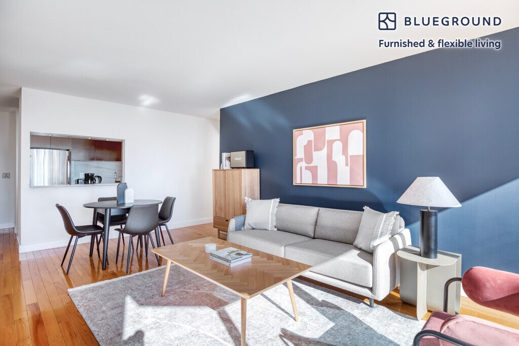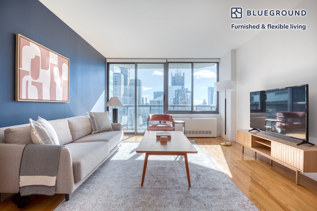 Feel at home wherever you choose to live with Blueground. You’ll love this charming Theater District furnished two bedroom apartment with its modern decor, fully equipped kitchen, and bright living room with great balcony views. Ideally located, you’re close to all the best that New York has to offer! (ID #NYC49) The advertised rate of $4,870/month is the lowest available price, based on a 1 month(s) and 3 day(s) stay with a move-in date of January 15, 2026. If you’re looking for a 1-year stay, the rate is $7,290/month. Rates vary depending on the duration of stay, season, and other parameters. For exact pricing and additional pricing components, please visit our website and enter your desired move-in and move-out dates. The rate is applicable when billed upfront; it can be higher if billed in multiple payments. Brokers are welcome to reach out. Were you looking for an unfurnished lease? Try Blueground instead and upgrade from unfurnished to furnished living: - Furnished at rates comparable to unfurnished - No setup or furniture costs - save thousands - Move-in ready - save time, just bring your suitcase Designed with you in mind As with any Blueground apartment, you’ll find a thoughtfully designed space complete with beautiful furniture and a fully equipped kitchen in this two bedroom property. And, thanks to our superior quality mattresses, luxury linens, and towels, you can relax knowing you’ll always feel comfortably at home. When you’re ready for some fun, you can take in the New York vibes or bring the entertainment to you with the premium wireless speaker or smart TV. Sleeping arrangements Queen Bed, 63in/160cm Queen Bed, 63in/160cm Amenities Building amenities unique to this two bedroom apartment include an on-site: - Doorman - Dryer in building - Elevator - Washing machine in building - Lounge - Pets allowed Arrival and ongoing support The entire apartment is yours to enjoy! Throughout your stay, you’ll have access to our Client Experience team through the Blueground App. You can schedule additional cleanings, submit maintenance requests, and view our neighborhood recommendations with just a few taps. We’ll share all details upon confirmation of your stay. Other things to note Building amenities may have an extra cost. This Blueground apartment has flexible lease options, allowing you to book it for one month, a year, or more. Pets are welcome, though weight limits and breed restrictions apply and may incur fees. Brokes CYOF. We take great pride in ensuring every photo displayed is shot in our own units with our actual furnishings. That said, we regularly refresh our decor and furniture arrangement, which may differ from what’s pictured. [SI]