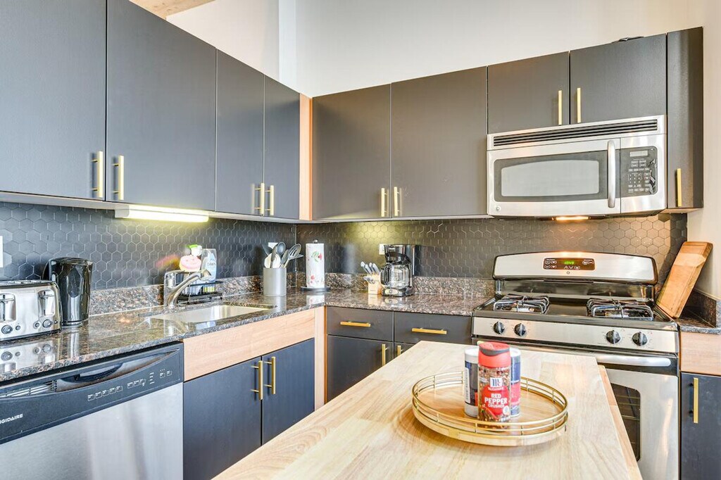 Stay in the Loop, where every meeting, meal, and museum is just a stroll away. This 1-bedroom, 1-bathroom vacation rental makes downtown living effortless. Grab a coffee from a corner café, take lunch breaks on the Riverwalk, and explore museums once the workday wraps. At the condo, a dedicated workspace and living room framed by skyline views make it easy to shift from productivity to relaxation. This single-story condo offers step-free entry via the elevator. This condo features a bedroom with a queen bed and a living room with a queen futon. Enjoy the convenience of smart TVs, a living room with skyline views, a desk with a printer, and in-unit laundry. The kitchen is fully equipped with a refrigerator, stove, oven, dishwasher, drip coffee maker, toaster, microwave, cooking basics, dishware, and flatware. Public paid parking is available across the street with varying rates. Located in the heart of the Loop, this apartment offers easy access to downtown Chicago's vibrant lifestyle. Enjoy leisurely strolls to nearby cafes, the Riverwalk, and museums, making it an ideal spot for both work and leisure. Quiet hours are observed from 8:00 PM to 8:00 AM. Smoking, pets, events, parties, or large gatherings are not allowed. Guests must be at least 21 years old to book, and additional fees and taxes may apply. A photo ID may be required upon check-in. The condo is remote work-friendly with a dedicated workspace that includes a desk and printer. Free Wi-Fi is available to ensure seamless connectivity. [SI]