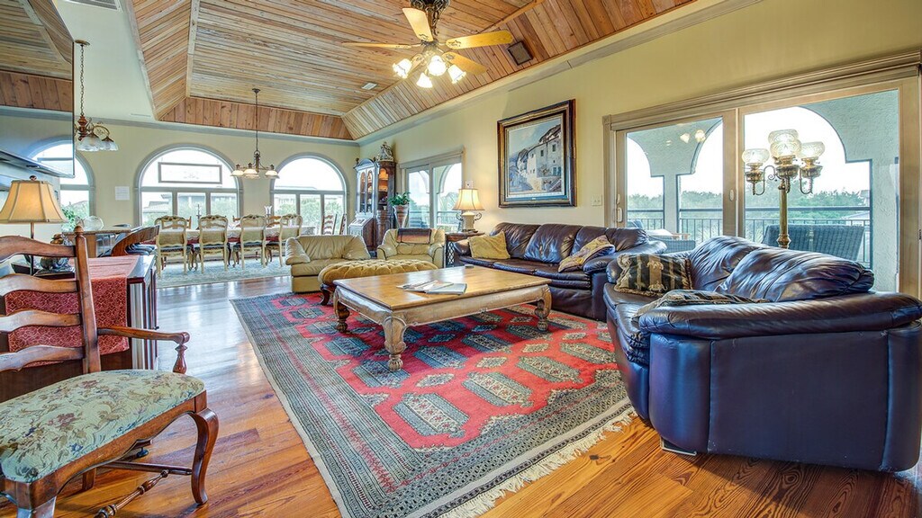 Welcome to Mull Cottage, a stunning second-row home located at 278 Pioneer Loop, offering spectacular views from the large third-floor great room. This spacious property features six bedrooms, six bathrooms, two half baths, and two kitchens, providing ample space for up to 20 guests. Enjoy the luxury of two whirlpool tubs, large sun decks, and a screened porch on the third floor. The downstairs den includes a pool table, and the home is equipped with wireless Internet, a gas grill, four flat-screen TVs, DVDs, an outside shower, and a two-car garage. This home rents from Friday to Friday during the peak summer season. Mull Cottage is designed with comfort and convenience in mind, featuring a gourmet kitchen and dining area in the great room, as well as a second kitchen downstairs. The property includes a king master bedroom, three king guest rooms, a queen guest room with bunk beds, and a queen guest room with a queen sleeper sofa, plus additional daybed and trundle. The downstairs living room also offers an additional queen sleeper sofa, daybed, and trundle, ensuring plenty of sleeping arrangements for all guests. For a fee, guests can access the DeBordieu Club amenities, including golf, tennis, and multiple dining options. A temporary club membership can be arranged for $200 a day, although this does not cover individual amenity fees. The property also offers three golf carts for guest use: two 6-seat carts for $600 per week and one 4-seat cart for $500 per week. The maximum number of cars allowed is six, with a $20 fee per vehicle to enter the community. Nestled in the exclusive DeBordieu Colony, a private oceanfront gated community near Pawleys Island, South Carolina, Mull Cottage offers access to a range of amenities. Guests can enjoy miles of beach and tidal creeks, an on-site nature preserve with walking trails and bike paths, and a delightful year-round climate. The community is conveniently located between Charleston and Myrtle Beach, making it an ideal destination for exploring the Lowcountry lifestyle. Please adhere to the no smoking and no pet policy set forth by the owner. The property is equipped with a security camera located at the front door for your safety. South Carolina law provides vacation rental guests with a reasonable expectation of privacy, and security cameras are prohibited inside the home or in private outdoor areas such as pools and hot tubs. Enhanced cleaning, disinfection, and sanitization protocols are in place to ensure the wellbeing and safety of our guests. Our properties are cleaned and sanitized by professionally trained and equipped housekeeper employees, following CDC housekeeping protocols and using approved disinfectants.