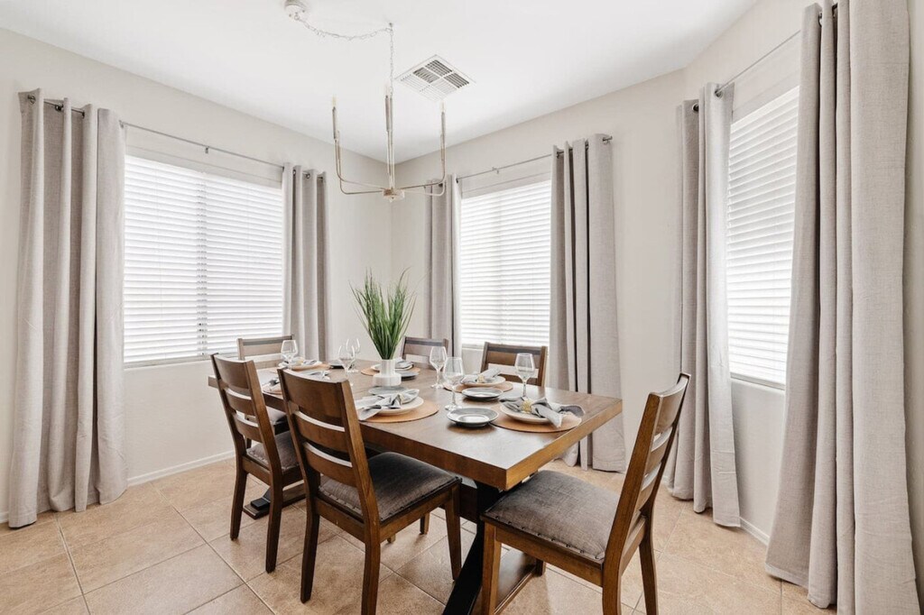 Escape to this stunning urban abode, a newly remodeled vacation rental nestled in the heart of Chandler, Arizona. This exquisite retreat embodies the essence of Bohemian chic, offering a serene and stylish oasis for travelers seeking an unforgettable getaway. With four bedrooms and three bathrooms, this home is located just minutes from upscale shopping at the Chandler Fashion Mall and the pristine greens of the Ocotillo Golf Club and many other golf clubs, promising a vacation experience like no other. A sanctuary of effortless elegance and boho-inspired charm, the interior design seamlessly blends modern comfort with bohemian flair, creating a tranquil atmosphere that instantly puts you at ease. Natural light floods the spacious living areas, highlighting the carefully curated decor that includes earthy tones, rustic accents, and an eclectic mix of textiles and artwork. Every corner of this vacation rental exudes warmth and character, inviting you to unwind and relax. The heart of this lovely home is the gourmet kitchen, where you'll find everything you need to whip up delicious meals. Granite countertops, stainless steel appliances, and ample cabinet space make cooking a joy. Share meals with your loved ones at the farmhouse-style dining table, or take advantage of Arizona's beautiful weather and dine al fresco in the backyard oasis. We charge $100 per day to heat the pool. The urban abode's prime location offers endless opportunities for adventure. Just minutes away, you can indulge in upscale shopping at the Chandler Fashion Mall or tee off at the Ocotillo Golf Club, where 27 holes of championship golf await amidst lush fairways, scenic waterfalls, and picturesque lakes. Chandler's vibrant dining scene, cultural attractions, and outdoor adventures are also within easy reach, ensuring that every day of your stay is filled with excitement. Uber, Lyft, and Waymo are all available in this area. No additional guests other than the ones staying are allowed, with exceptions made upon arrangement. Violating this will incur a $200 charge per person per day. Any excessive cleaning required is $50 per hour. Tampering with security equipment is grounds for immediate cancellation of the booking. Loss of key will be a $50 replacement fee. No animals are allowed, and bringing one will result in being asked to leave the premises. No smoking, vaping, or drug use is permitted, with a zero-tolerance policy. Violations incur a $500 fine, with an additional $25 for each piece of evidence found. No parties or events are allowed, with no exceptions, and violations will result in being asked to leave with no refund. Noise complaints or police involvement may also result in being asked to leave with no refund. Late checkouts can be arranged for an additional $100 fee, requested 24-48 hours in advance. A $150 charge applies to guests still on the property after checkout time. If a refund is required for another guest due to overstaying, reimbursement for the refund will be required. No crypto mining is allowed on the premises, and violations will result in being asked to leave with no refund. Be respectful of the neighbors, as this is a family-friendly neighborhood. You will have access to the entire property. Registration Number: 307306 [SI]