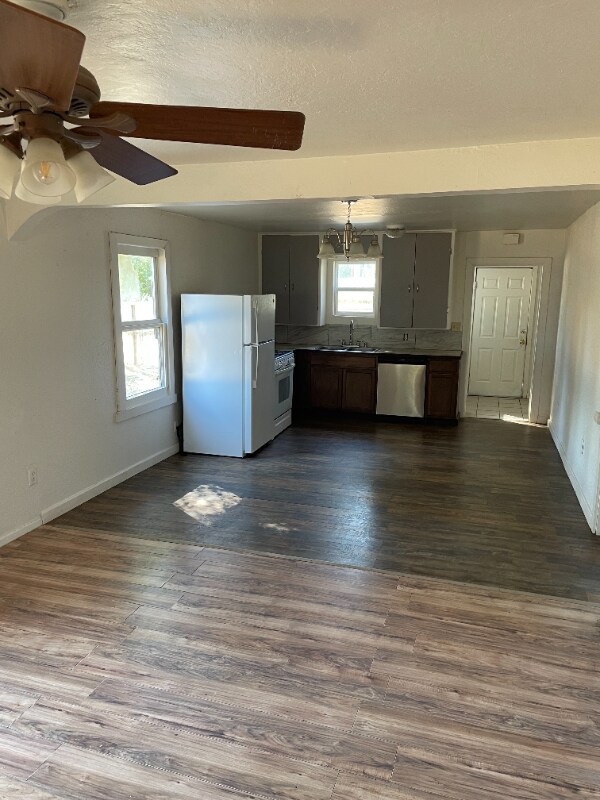 Property Id: 2134235 Welcome to your new home! This cozy 2-bedroom, 1-bath single-family house offers comfort, convenience, and plenty of outdoor space. Nestled on a large lot with mature trees, a storage shed, and even a classic tire swing, it's perfect for those who enjoy both indoor comfort and outdoor living. Inside, you'll find an updated kitchen equipped with a refrigerator, gas stove/oven, and dishwasher. The bright bathroom features a shower/tub combo and tiled finishes. Bedrooms include ceiling fans and ample natural light, while the living areas showcase attractive wood-look flooring. A laundry area with washer/dryer hookups and extra storage adds everyday convenience. Relax on the covered front porch, enjoy the wide yard for gardening or outdoor fun, and take advantage of the property's peaceful setting just minutes from town.