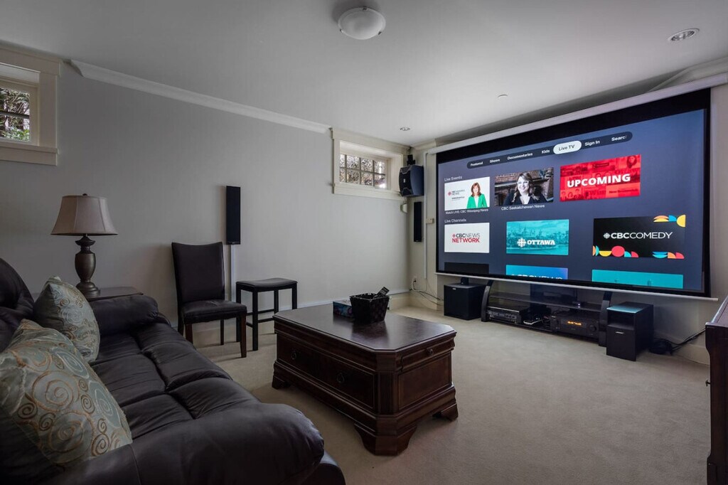 Discover luxury living in this French-style home in Kerrisdale, Vancouver's West Side. With 5 bedrooms, each featuring comfortable beds, it's perfect for families, adults, and executives alike. Enjoy the convenience of a fully stocked kitchen, a dedicated home office, and two spacious living rooms. Retreat to the elegant master bedroom for ultimate relaxation. Outside, the large patio with outdoor furniture invites you to unwind in the fenced backyard, offering privacy and tranquility. Upon entering the home, you'll be greeted by lofty ceilings and expansive living and dining areas. The main floor boasts a fully equipped kitchen, an office, two separate living spaces, a dining area, and convenient access to the backyard, where sunlight graces the space for most of the day. Upstairs, you'll discover four bedrooms and three bathrooms, ideal for families. The lower level offers a distinctive theater room, an additional bedroom, an open area with exercise equipment, and a meticulously crafted wine cellar. Parking is enough for 2 cars in front of the home. Nestled in the vibrant city of Vancouver, Kerrisdale is a charming and upscale neighborhood known for its leafy streets, elegant homes, and a relaxed yet refined atmosphere. Located on Vancouver's west side, Kerrisdale exudes a sense of tranquility while still being conveniently close to the city center. One of Kerrisdale's defining features is its picturesque shopping district along West 41st Avenue, where you'll find a delightful mix of boutique shops, upscale restaurants, cafes, and local businesses. Strolling along these streets, you'll encounter a blend of historical architecture and modern amenities, creating a unique and inviting ambiance. Nature enthusiasts will appreciate Kerrisdale's proximity to several parks and green spaces, including the sprawling VanDusen Botanical Garden, where lush gardens, winding paths, and serene ponds provide an oasis of tranquility amidst the urban landscape. Nearby, the Arbutus Greenway offers a scenic route for walking, cycling, and enjoying the beauty of Vancouver's natural surroundings. Families are drawn to Kerrisdale for its excellent schools, including Kerrisdale Elementary and Point Grey Secondary, renowned for their academic excellence and supportive communities. The neighborhood also offers a variety of recreational facilities, including community centers, sports fields, and tennis courts, ensuring there's always something to keep residents active and engaged. Kerrisdale's convenient location provides easy access to downtown Vancouver, as well as neighboring communities like Kitsilano, Dunbar, and Shaughnessy. Whether you're seeking a leisurely stroll through tree-lined streets, a gourmet dining experience, or a vibrant cultural event, Kerrisdale offers a perfect blend of urban convenience and suburban charm. Getting around Kerrisdale is relatively easy due to its well-connected transportation infrastructure. Kerrisdale is served by several bus routes operated by TransLink, Metro Vancouver's transportation authority. These buses connect the neighborhood to various parts of the city, including downtown Vancouver, UBC, and other nearby neighborhoods. The bus stops are conveniently located throughout Kerrisdale, making it easy to access public transit. Kerrisdale features pedestrian-friendly streets and designated bike lanes, making walking and cycling viable options for getting around the neighborhood. Many residents enjoy walking or biking to local shops, parks, and amenities, contributing to a healthy and active lifestyle. While Kerrisdale is primarily a residential area, it is well-connected to major roadways such as West 41st Avenue, Granville Street, and West Boulevard, providing easy access to other parts of Vancouver and beyond. Residents who prefer driving will find ample street parking and easy access to main thoroughfares. Car-sharing services like Car2Go and Evo, as well as ride-hailing services like Uber and Lyft, are available in Vancouver. Residents and visitors can utilize these services for convenient transportation options, especially for trips beyond the neighborhood. Overall, Kerrisdale offers a variety of transportation options, making it easy for residents and visitors to navigate the neighborhood and access amenities, services, and attractions both within Kerrisdale and throughout the Greater Vancouver area. Guests will have access to the home in its entirety during their stay. There are outdoor cameras facing the outside of the property. Important House Rules: No parties, no additional guests, and no events. Distances include a 10-minute drive to downtown, a 10-minute drive to the airport, a 3-minute drive to the nearest grocery or pharmacy, walking distance to parks and Kerrisdale neighborhood, a 10-minute drive to UBC, a 10-minute drive to Richmond, and a 5-minute drive to Kitsilano. [SI]