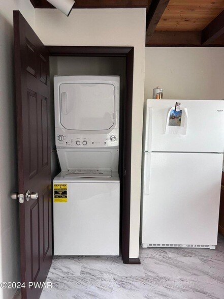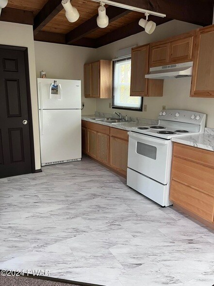 Newly renovated two story 3 bedroom 2 bathroom home in The Hideout, a gated community in Wayne County. The location is located on a quiet road backing up to green space with a large back yard. The house is two bedrooms and a bathroom on the second floor and the main floor has the 3rd bedroom, 1 bathroom and an open concept kitchen and family room space. The open space has a brick fireplace and sliding doors leading to a large deck. Tenants required to complete an online background check, produce proof of employment and references. Pets are not permitted. Smoking is not permitted. Heat is electric. There is 1 room AC unit in the family room. The house sits on a crawl space with gravel floor. Tenants responsible for electric, water, sewer, lawn maintenance, snow removal and cable/phone/internet. Tenants pay a registration fee of $425 at start of lease and any annual renewals. Tenants pay for any additional fees to Hideout for use of amenities, gate access, mailbox etc.