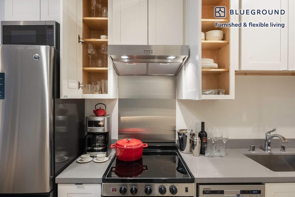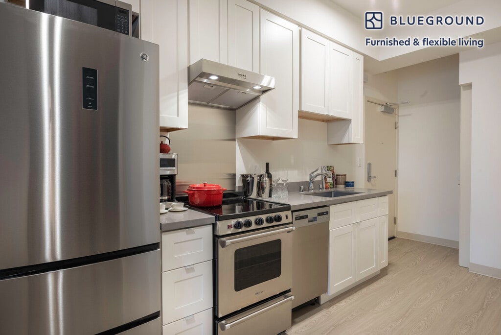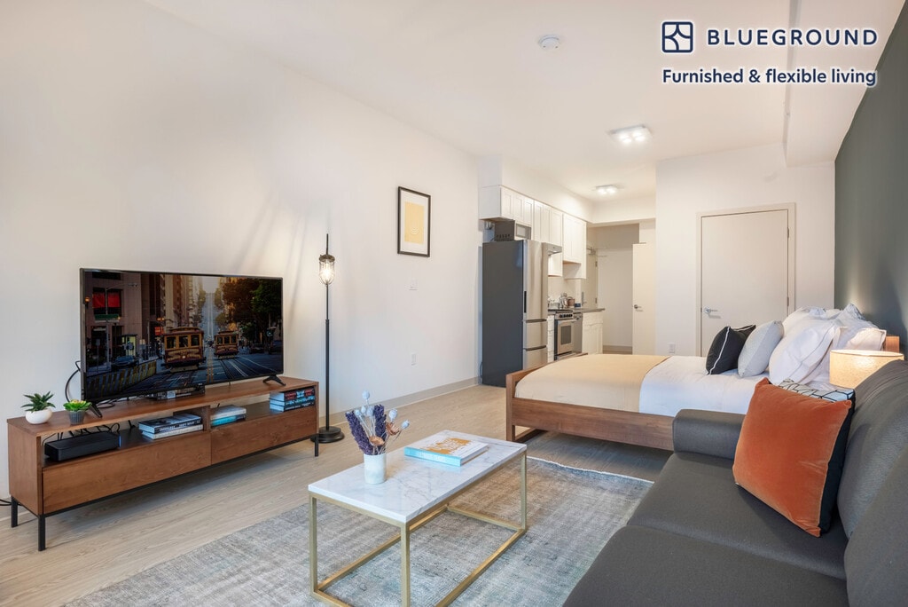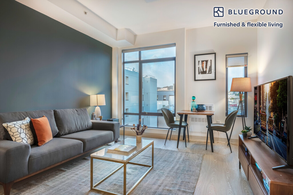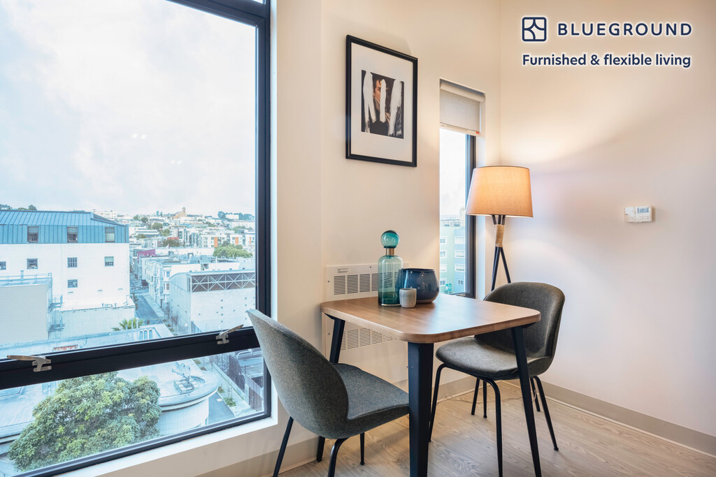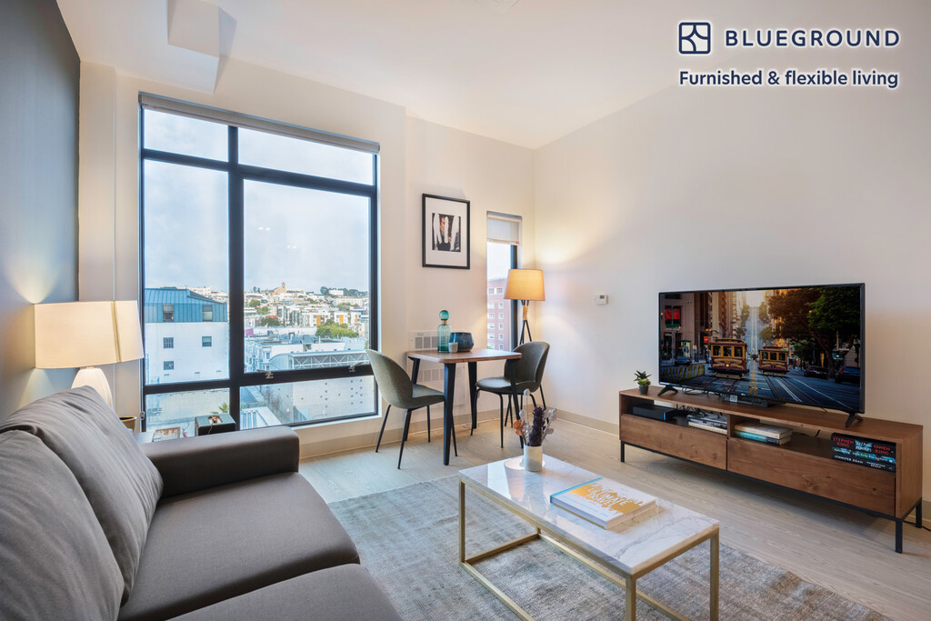 Show up and start living from day one in San Francisco with this stylish studio Blueground apartment. You’ll love coming home to this thoughtfully furnished, beautifully designed, and fully equipped Civic Center home with stunning views over the city. (ID #SFO112) The advertised rate of $2,940/month is the lowest available price, based on a 12 month(s) stay with a move-in date of February 24, 2026. Rates vary depending on the duration of stay, season, and other parameters. For exact pricing and additional pricing components, please visit our website and enter your desired move-in and move-out dates. The rate is applicable when billed upfront; it can be higher if billed in multiple payments. Brokers are welcome to reach out. Were you looking for an unfurnished lease? Try Blueground instead and upgrade from unfurnished to furnished living: - Furnished at rates comparable to unfurnished - No setup or furniture costs - save thousands - Move-in ready - save time, just bring your suitcase Designed with you in mind Gorgeous furniture, fully equipped kitchen, smart TV, and a premium wireless speaker are just a few of the amenities you’ll find inside this studio apartment. Ideally located in San Francisco, you’ll find a lot to love outside as well. When you’re ready to relax, you’ll be happy to discover every Blueground bedroom comes with superior quality mattresses, luxury linens, and cozy towels. We handle everything so you can simply show up and start living. This apartment also offers in-apartment laundry. Sleeping arrangements Queen Bed, 63in/160cm Amenities Building amenities unique to this studio apartment include an on-site: - Dryer - Elevator - Washing machine - Pets allowed - Rooftop BBQ Arrival and ongoing support The entire apartment is yours to enjoy! Throughout your stay, you’ll have access to our Client Experience team through the Blueground App. You can schedule additional cleanings, submit maintenance requests, and view our neighborhood recommendations with just a few taps. We’ll share all details upon confirmation of your stay. Ideally Located This furnished apartment is in the Civic Center. The area contains many of the city’s largest government and cultural institutions. It is home to San Francisco’s City Hall and is surrounded by a number of classical buildings. The Supreme Court of California, the Asian Art Museum and the library are all located here. It has two large plazas (Civic Center Plaza and United Nations Plaza) and is the main site for any culturally significant activity. Located in the heart of the city, the SFO Airport is just 25 minutes by car or 45 minutes by BART. Other things to note Building amenities may have an extra cost. This Blueground apartment has flexible lease options, allowing you to book it for one month, a year, or more. Pets are welcome, though weight limits and breed restrictions apply and may incur fees. We take great pride in ensuring every photo displayed is shot in our own units with our actual furnishings. That said, we regularly refresh our decor and furniture arrangement, which may differ from what’s pictured. Also note - This apartment faces the street