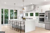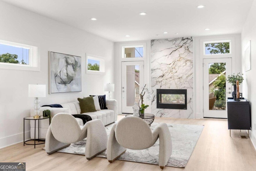 Welcome home to 24 Hutchinson Street NE - a spectacular modern sanctuary where contemporary design, flexible living, and an unbeatable Edgewood location come together in perfect harmony. Set on a quiet, tree-lined street in the heart of Edgewood, this nearly new three-story home is filled with natural light and luxurious finishes throughout. Over 3,500 square feet unfolds across an open, versatile floorplan with 5 bedrooms and 3.5 baths, designed to balance everyday comfort with stylish entertaining. On the main living level, the open-concept layout seamlessly connects indoor and outdoor spaces. Gather around the impressive 9-foot island in the chef's kitchen, where a striking Neolith Calacatta Luxe stone vent hood, gleaming quartz countertops, custom cabinetry, and stainless-steel appliances - including a 5-burner gas range - create the ultimate backdrop for casual brunches or lively dinner parties. The living room centers around a dramatic double-sided indoor/outdoor fireplace, featuring the same custom stonework that ties the spaces together beautifully. Step through oversized doors to discover three private balconies, offering fresh air and treetop views from every angle. Upstairs, the third-floor primary suite is your own private retreat - watch the sunrise from your personal balcony perched in the canopy. A spa-inspired primary bath boasts a marble soaking tub, an oversized shower with dual rain heads and multiple side jets, and dual walk-in closets with custom systems to keep your mornings running smoothly. Two additional bedrooms share a connected full bath, while the terrace level offers two more light-filled bedrooms - ideal for guests, a home gym, or dedicated offices that make working from home a breeze. Outside, a lush, fully fenced backyard feels like an urban escape, with perennial landscaping and an irrigation system for easy upkeep. Lounge year-round on the large covered patio, gather friends for summer dinners, or let pets roam free in the green space. A one-car garage, gated driveway, and parking pad offer ample off-street parking behind the private automatic gate. Smart-home automation puts everything at your fingertips with Google Home, including the front door lock, video doorbell, floodlight security cameras, Ecobee Smart Thermostat, alarm system, and light fixtures - so you can lock up, light up, and cool down with a simple voice command. When you're ready to explore, Edgewood's best is just beyond your door. Enjoy a short stroll to beloved local spots like Bona Fide Deluxe and El Tesoro, or wander a little farther to Kirkwood neighborhood favorites like El Myriachi and Le Petit Marche. The Edgewood Retail District, Edgewood-Candler Park MARTA, the BeltLine, and Pratt-Pullman Yard are all just about a mile away. And when the trees are in full bloom, it truly feels like living in a treehouse in the middle of the city - the best of Atlanta intown living. 24 Hutchinson Street NE isn't just another modern home - it's an inspired urban haven where bold design, daily comfort, and intown vibrancy make every day feel like a retreat.