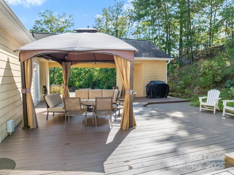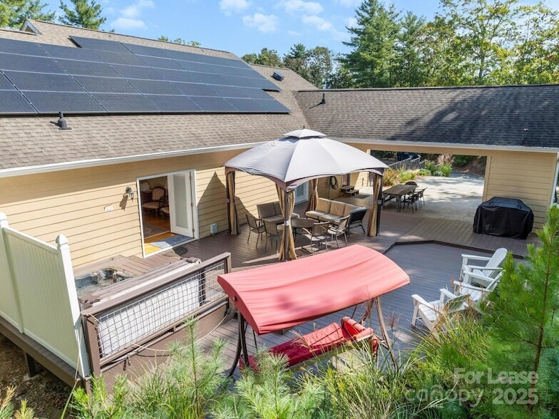 Spectacular, turnkey private residence with separate living quarters and mountain views on 1+ acre 10min from Asheville & 5min from Weaverville with fantastic amenities nearby. Vaulted ceilings in the great room coupled w/ open floor plan create an expansive living space marked by superior finishes that distinguish this home as a true architectural delight. Great Room opens to outdoor entertaining area which includes a 1,000 square foot deck & new Hot Tub that can also be accessed directly from primary bedroom. Secondary living space downstairs w/ its own entrance, a full kitchen and bedroom w/ensuite bath makes a great multi-generational home. Sophisticated Solar Panel system serves as back-up energy (GENERAC) for critical components of home, reduces electricity bill! Extra large 2 car garage and RV Hook-Up.